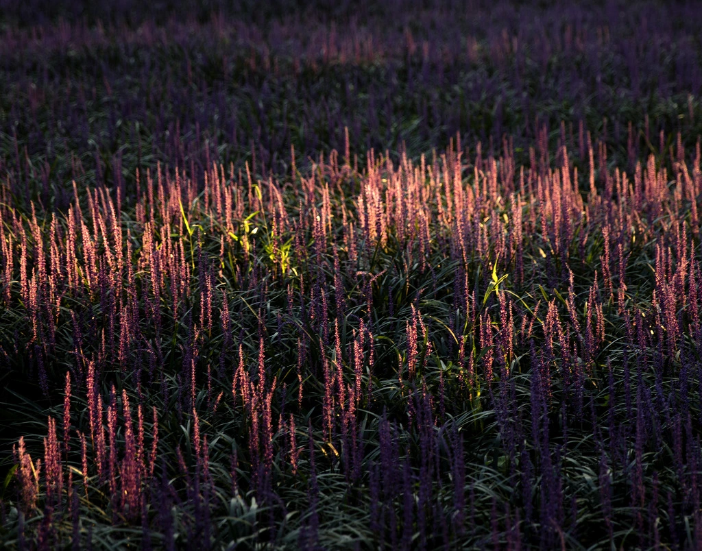 960m 한 바퀴를 돌 때 맥문동 세 군락을 만난다. 대충 눈대중한 계산이지만 동남쪽의 천 평은 허리를 펴기 시작했다. 그 위 삼천 평은 아직 보랏빛을 머금지 못했으며 가장 북쪽 이천 평 맥문동은 이제 조금씩 꿈틀거리고 있다. 만개하려면 며칠 더 지나야 할 듯.