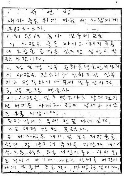 <권정생 작가의 친필 유언장> - 이 글은 지금도 많은 사람들에게 회자되고 있다.