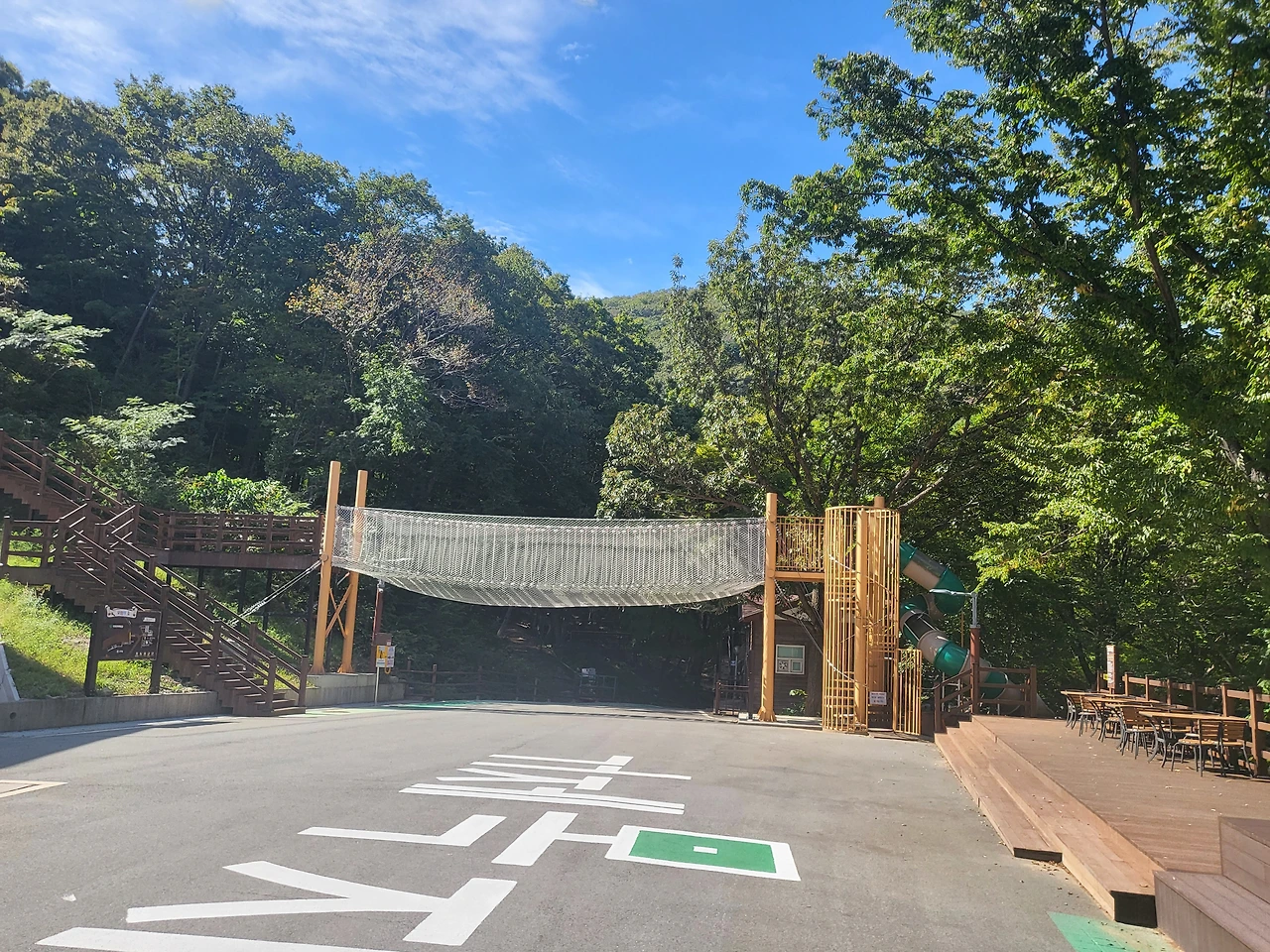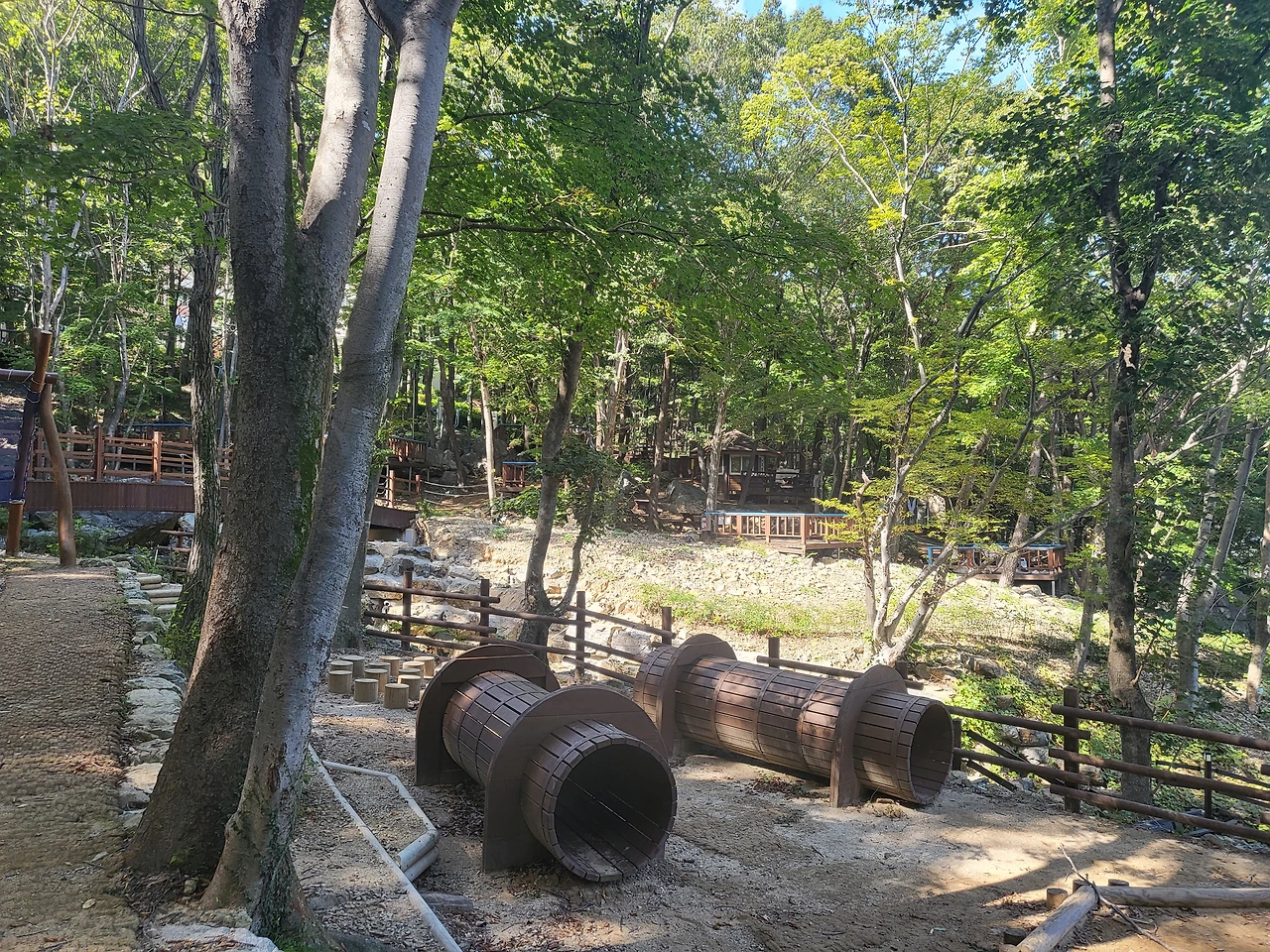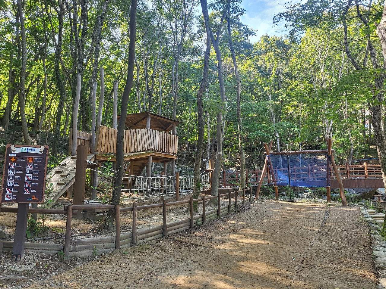 숲 속 놀이터에는 아이가 가장 좋아하는 집라인이 있어 여러 번 탔다.