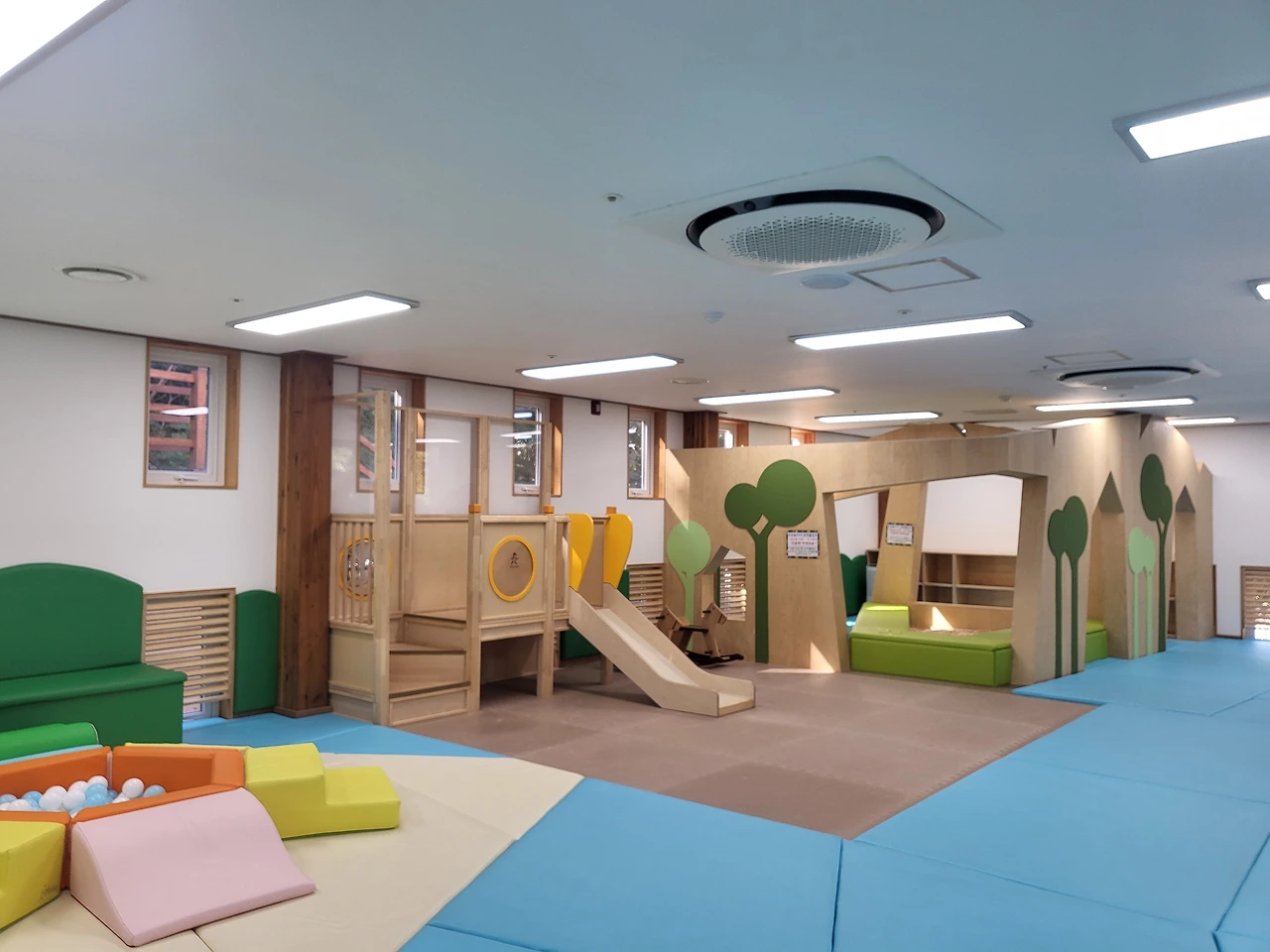 웬만한 키즈카페 보다 깨끗하고 나무 내음을 맡으며 놀 수 있다.