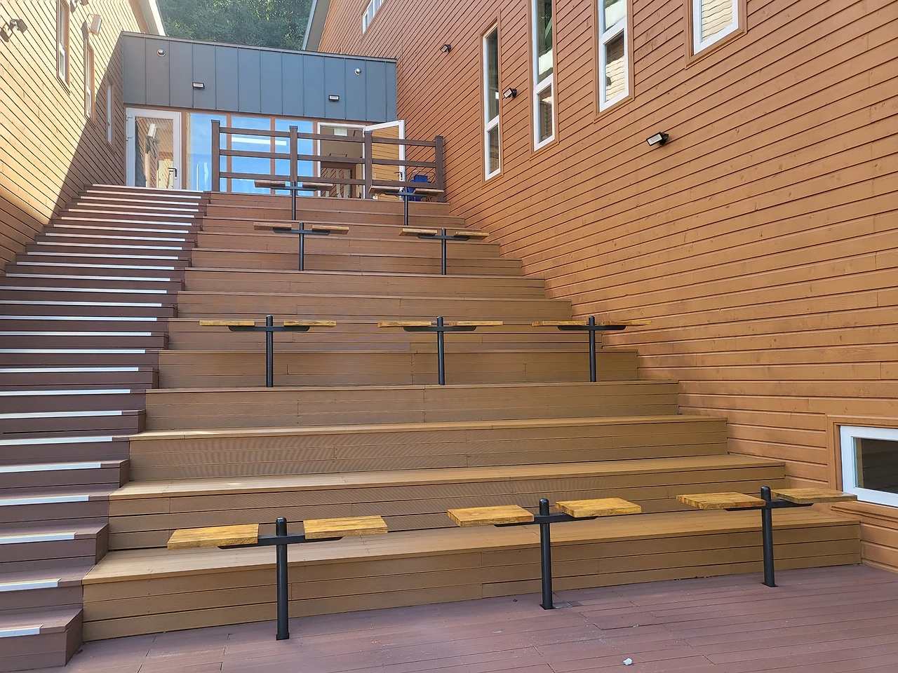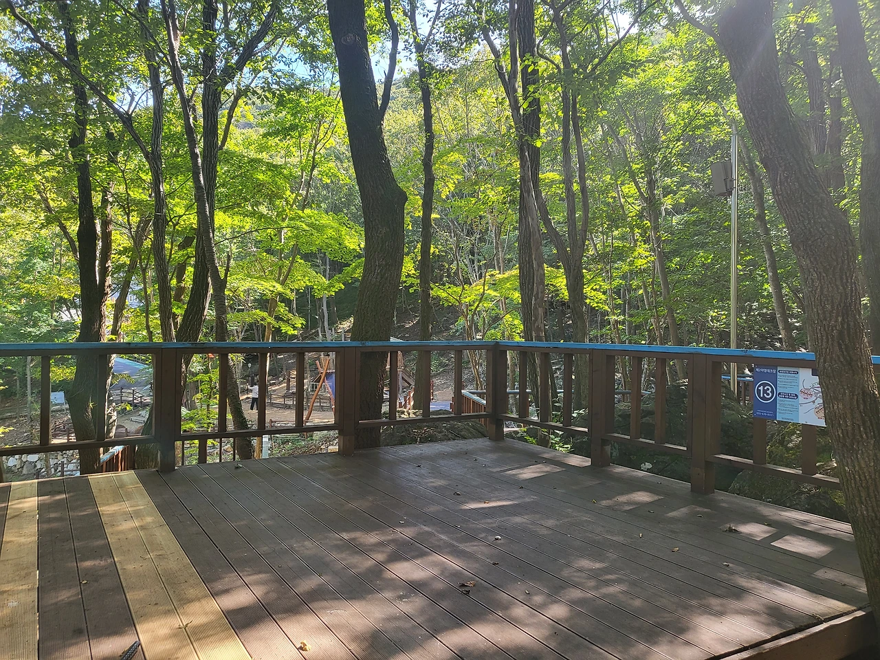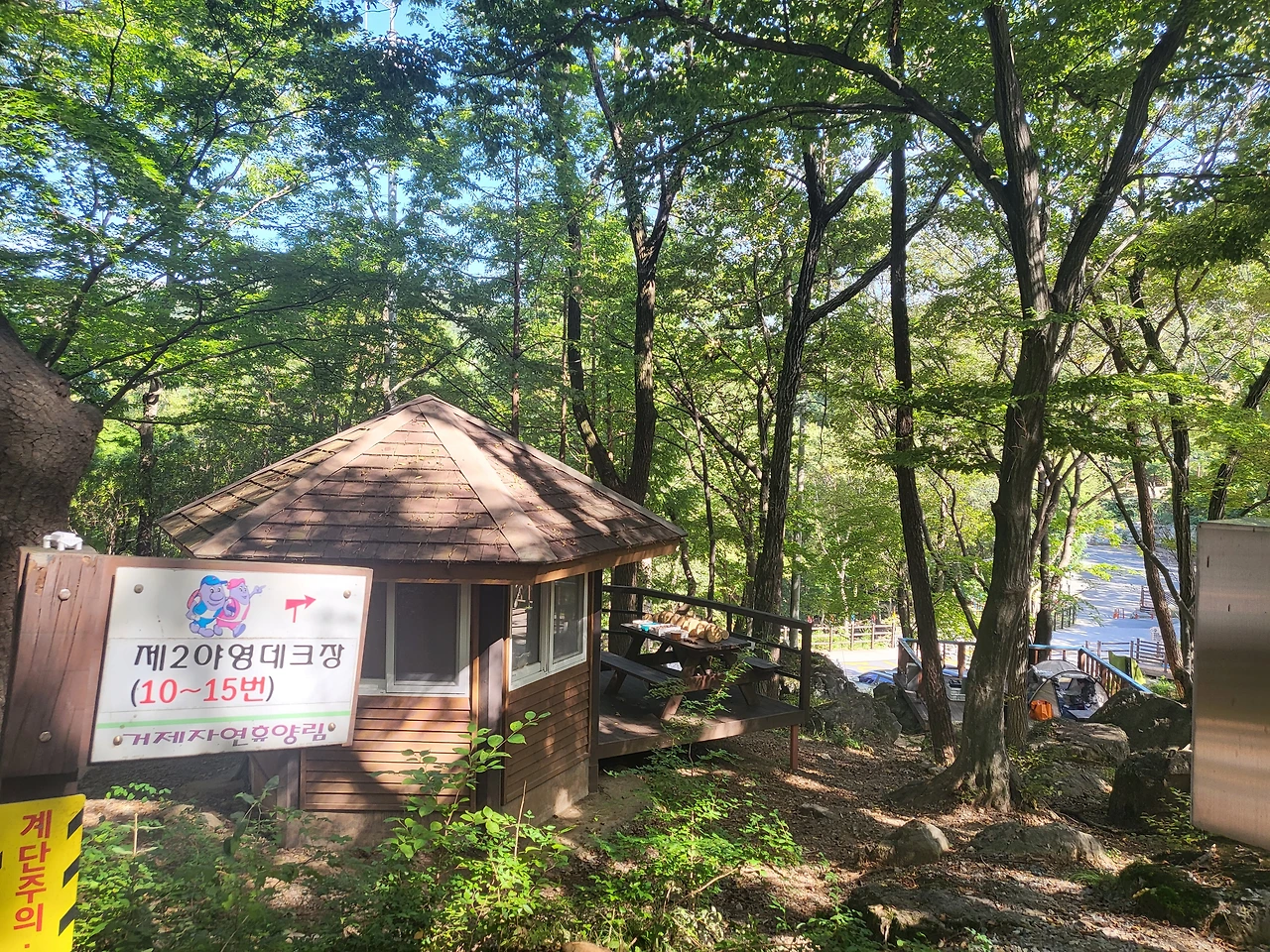 자연휴양림의 야외 야영장 데크가 아주 잘 되어있었다.