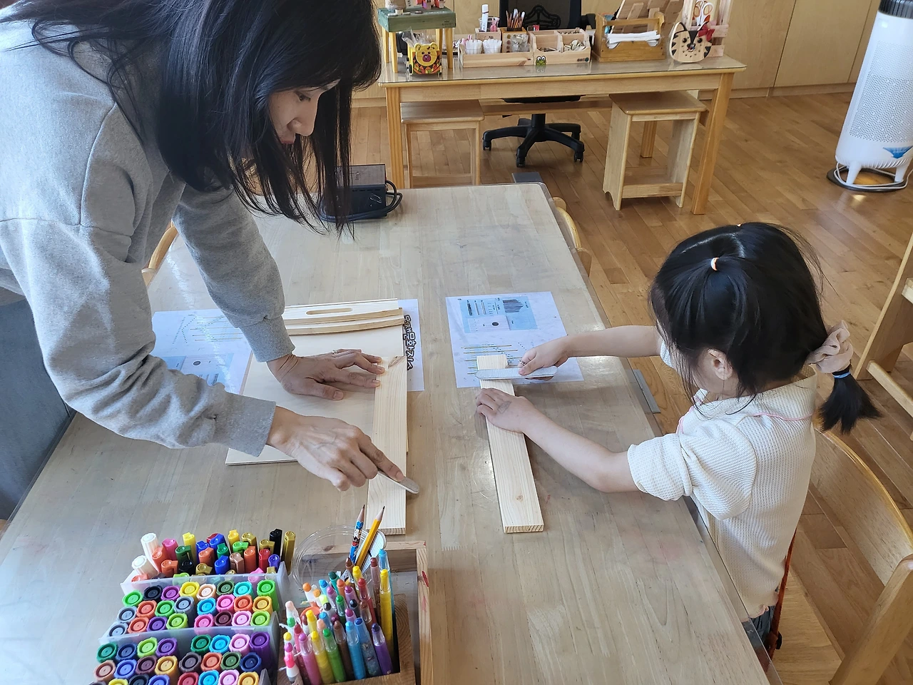6세 아이는 나무 장난감 보다 쟁반 만들기를 택했다.