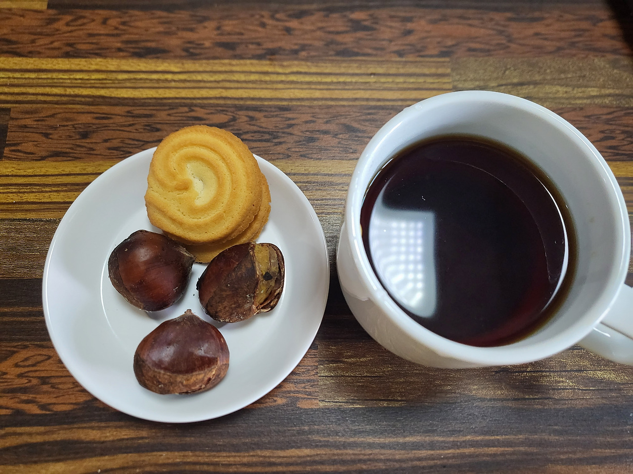 맛있는 군밤♥ 군밤과 아메의 조화는 가을입니다.
