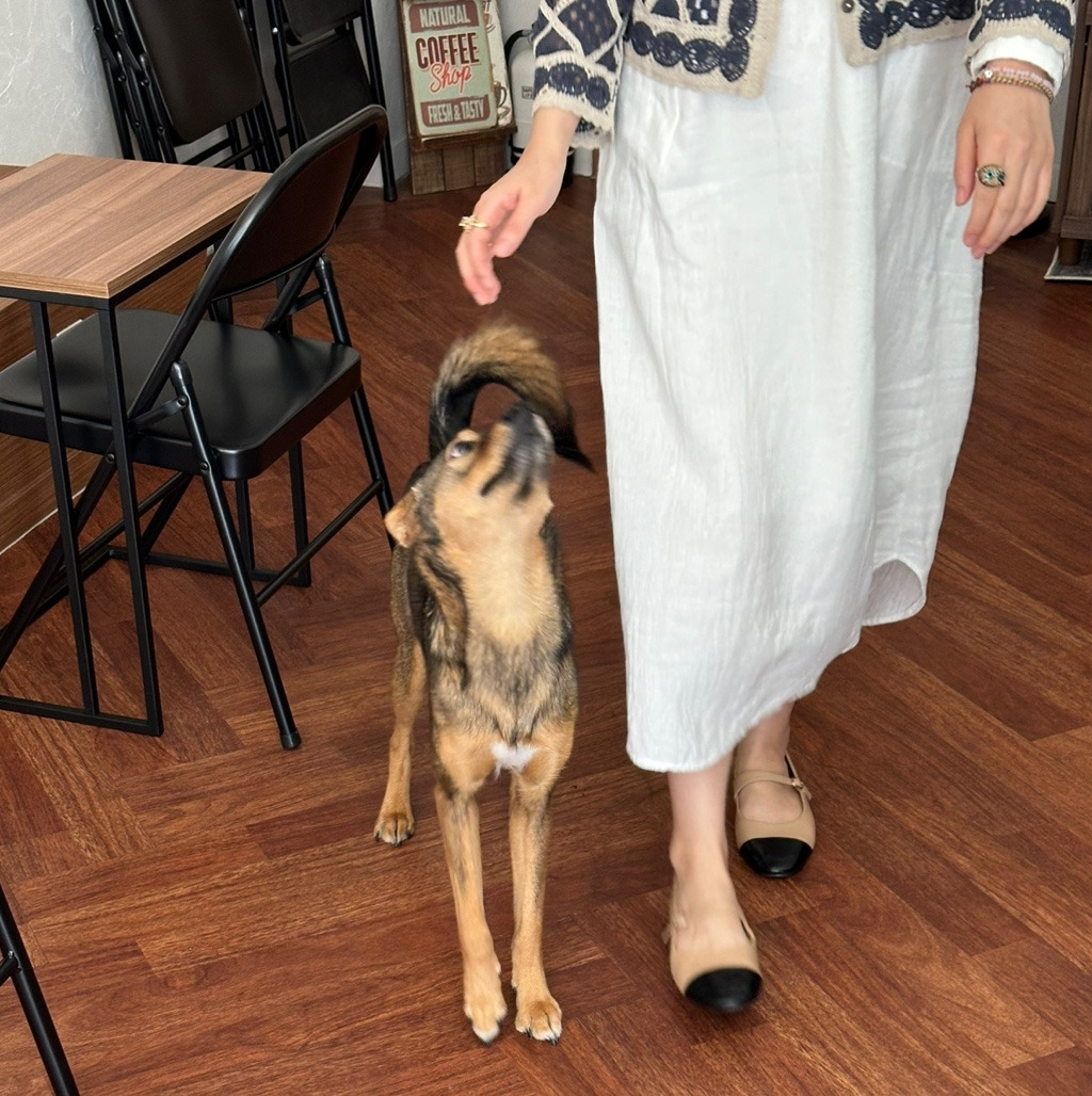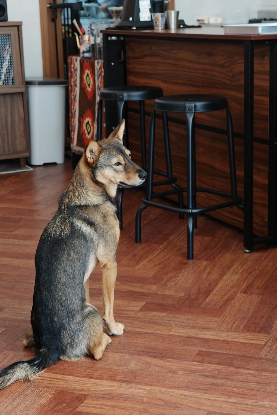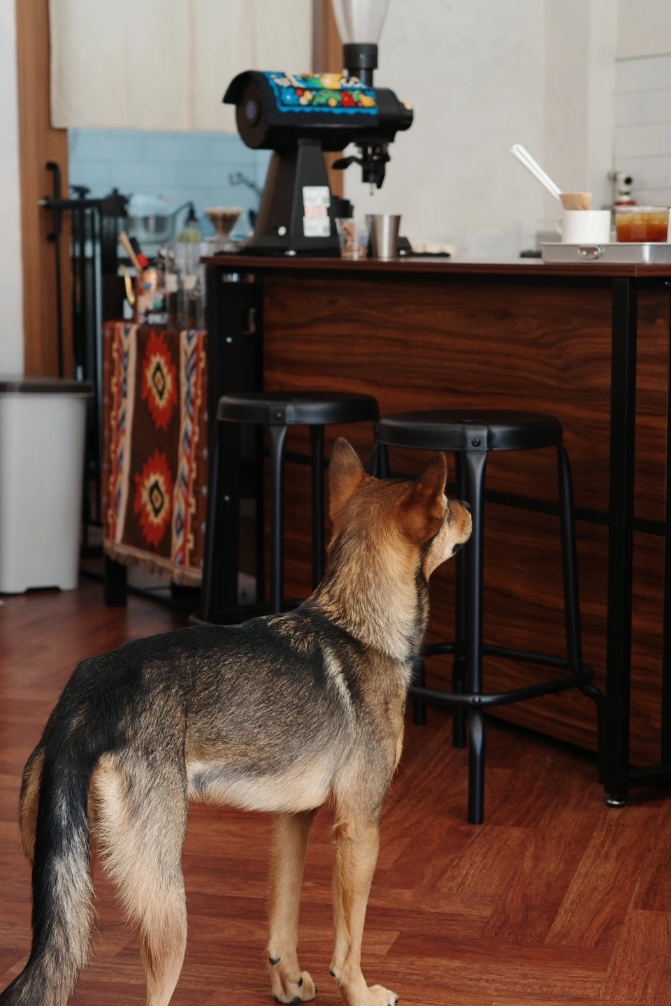 커피를 기다리며 주인이 키우는 멍멍이에게 시선을 빼앗긴다.