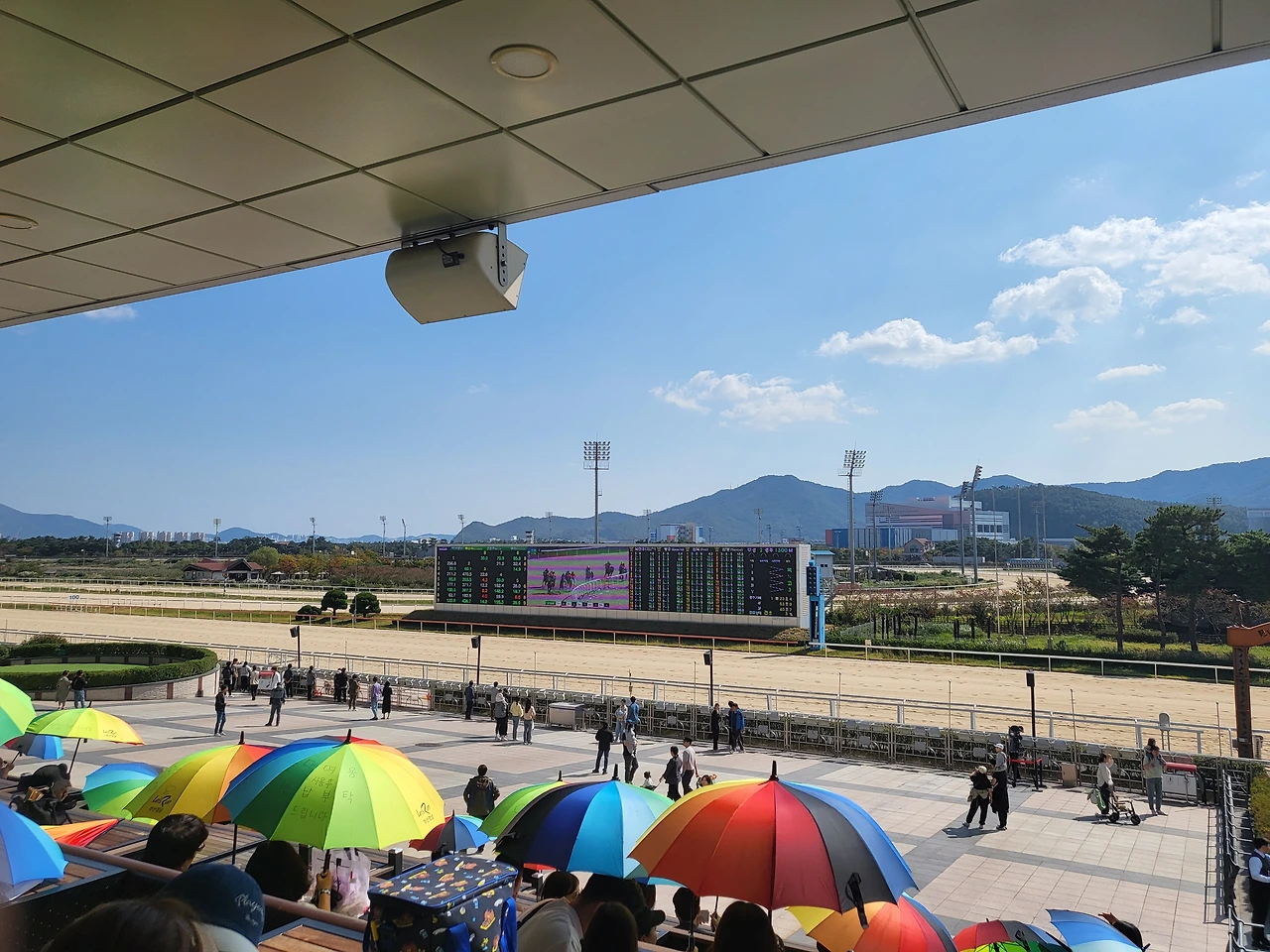 경마장으로 들어가 루키즈존에서 아이와 경마 구경을 했다. 루키즈존 앞이 결승선인데 굉장히 빠른 말들의 질주에 아이도 신랑도 입이 벌어졌다.