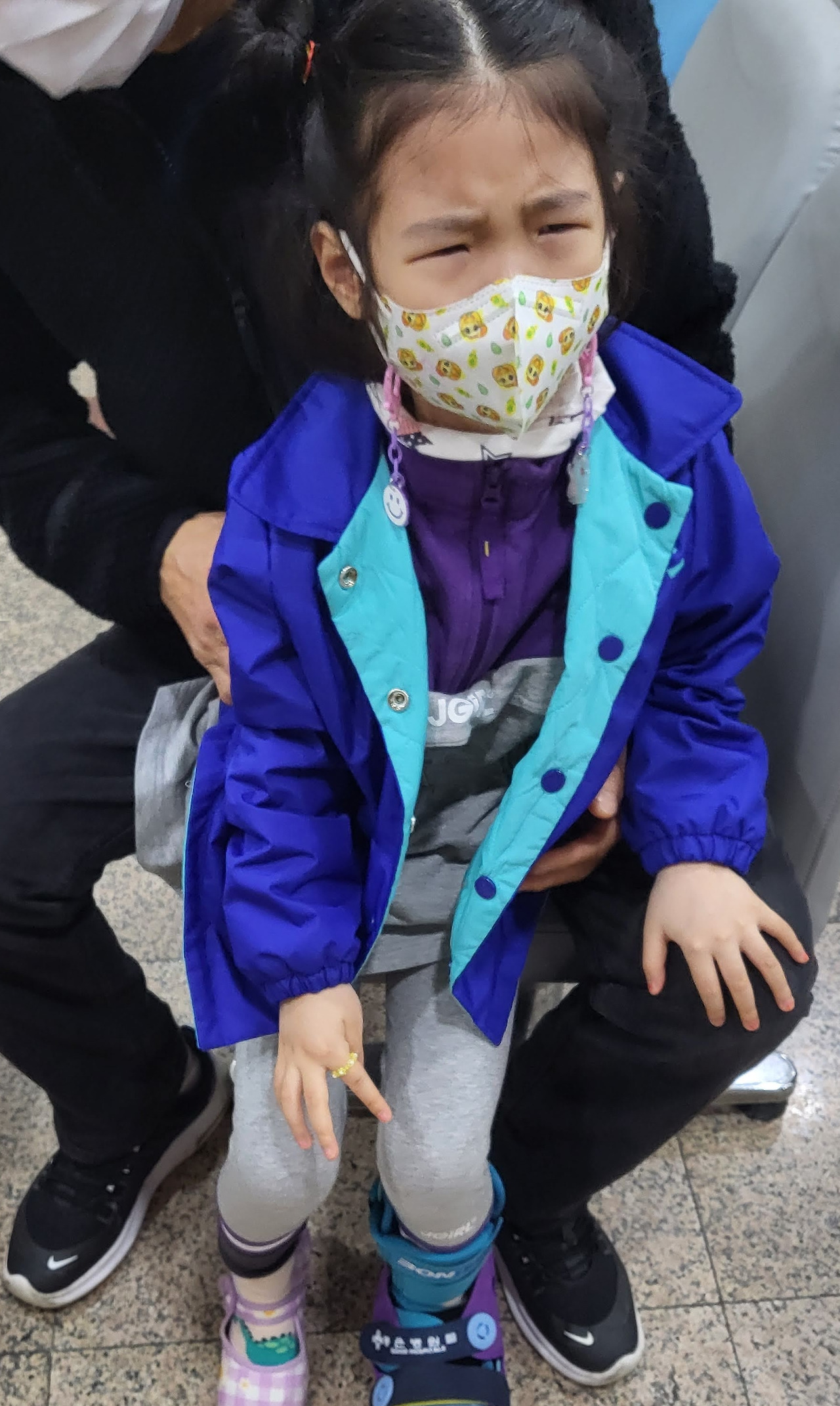 깁스를 처음 해 본 아이는 당황해 걷는 걸 두려워했다.