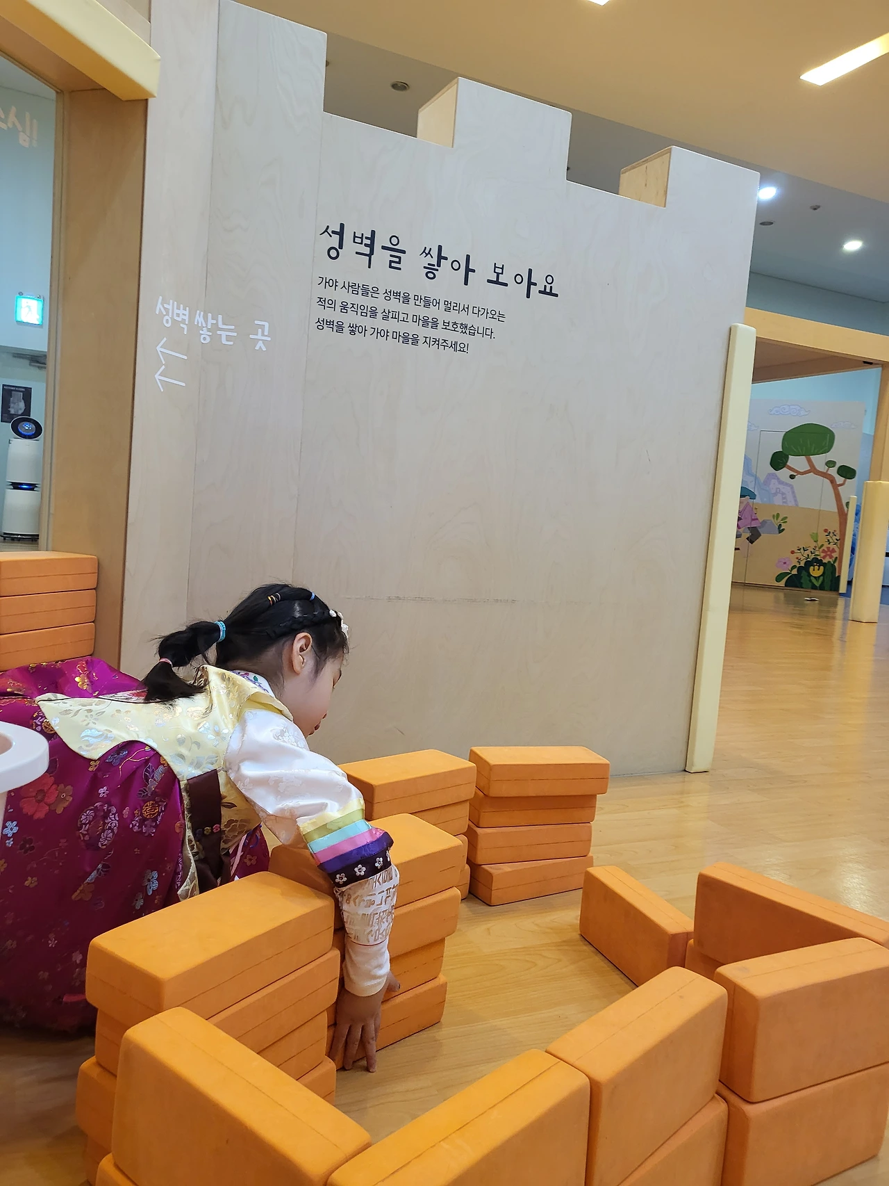 아이가 제일 처음 놀이한 것은 가야 집에 들어가 유물 맞추기 게임을 했다.