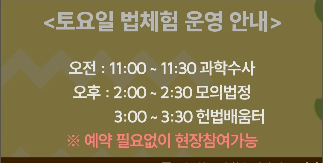 11시부터 법 세움터에서 체험 수업 했어요.(무료랍니다)