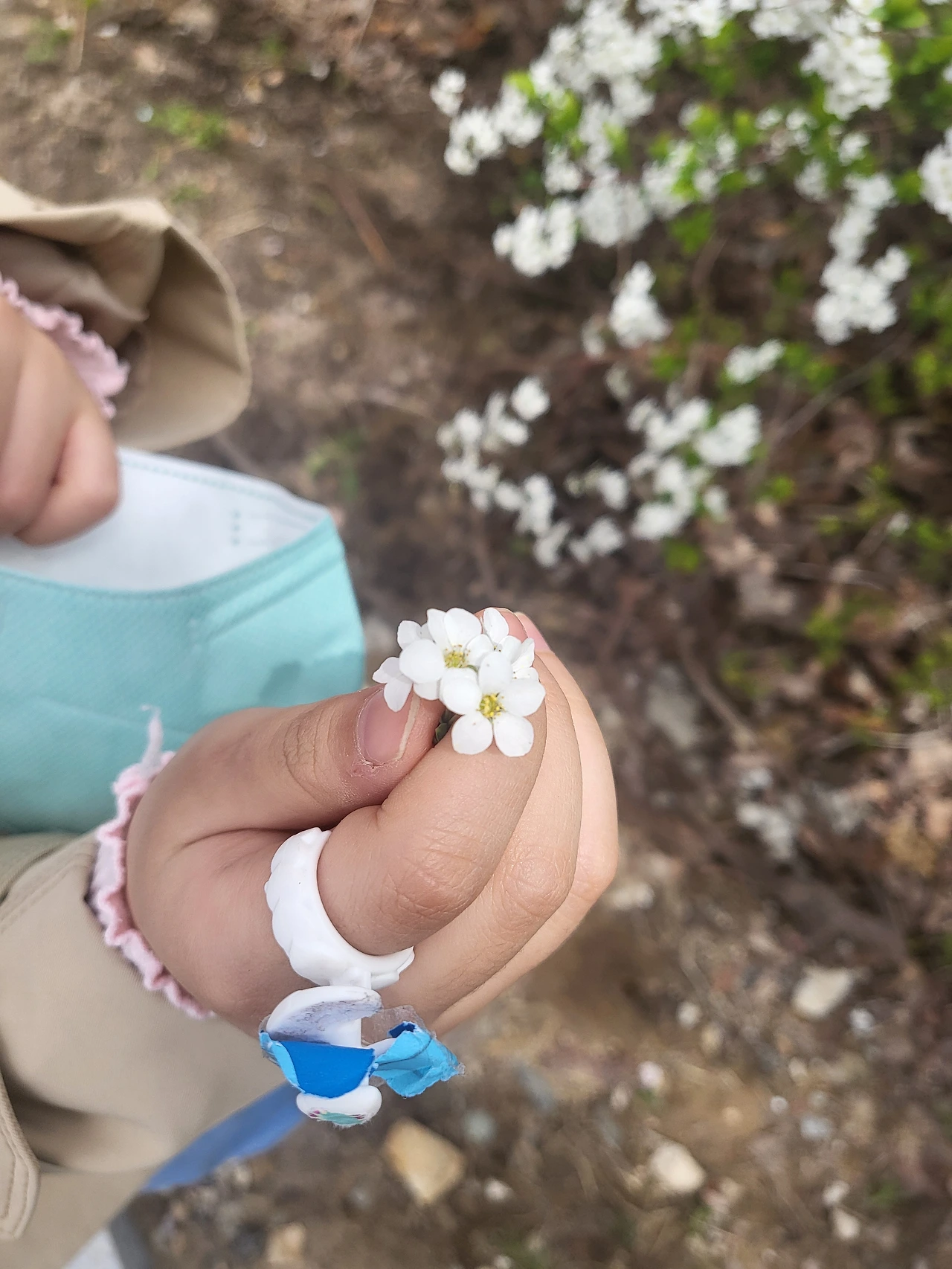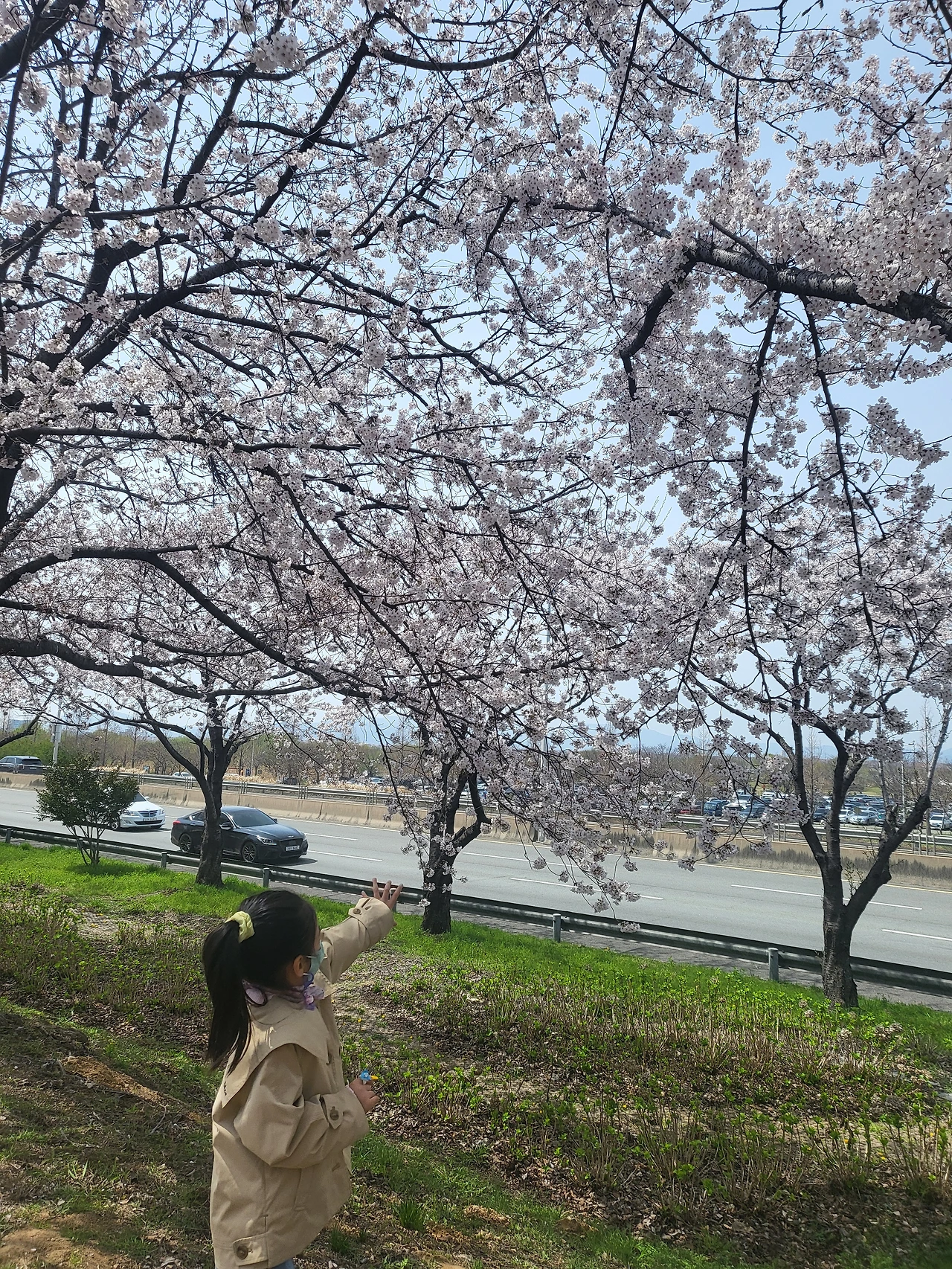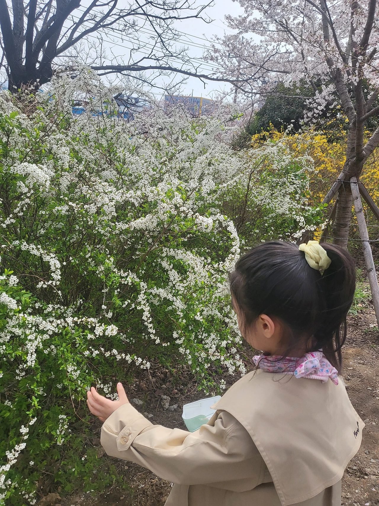 꽃가루를 날려~ | 오늘도 아이랑 꽃구경 갔다. 오늘의 장소는 만덕고갯길 병풍사(석불사) 주차장에 주차 후 아이와 함께 꽃길을 걸었다. 꽃길을 걸으니 신이 나는지 자연에게 인사를 건넨다. 그