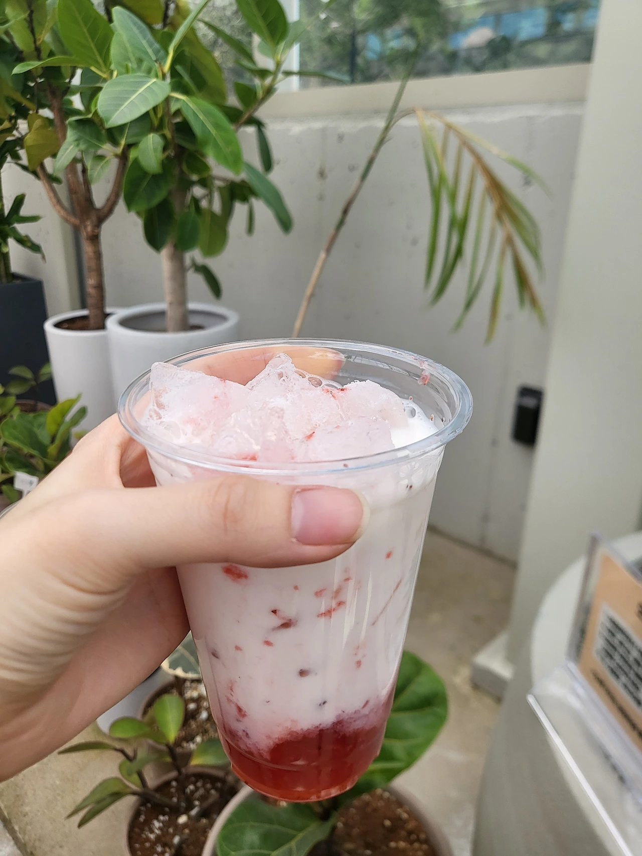 온실이 너무 따뜻해서 아이스 메뉴가 딱입니다. 원동력커피는 달달구리해요. 땅콩버터 맛이 나는 크림이라 마시면서 고소한 맛도 느낄 수 있어요. 땅콩버터 좋아하는 전 이 커피 맛에 만족했어요^^