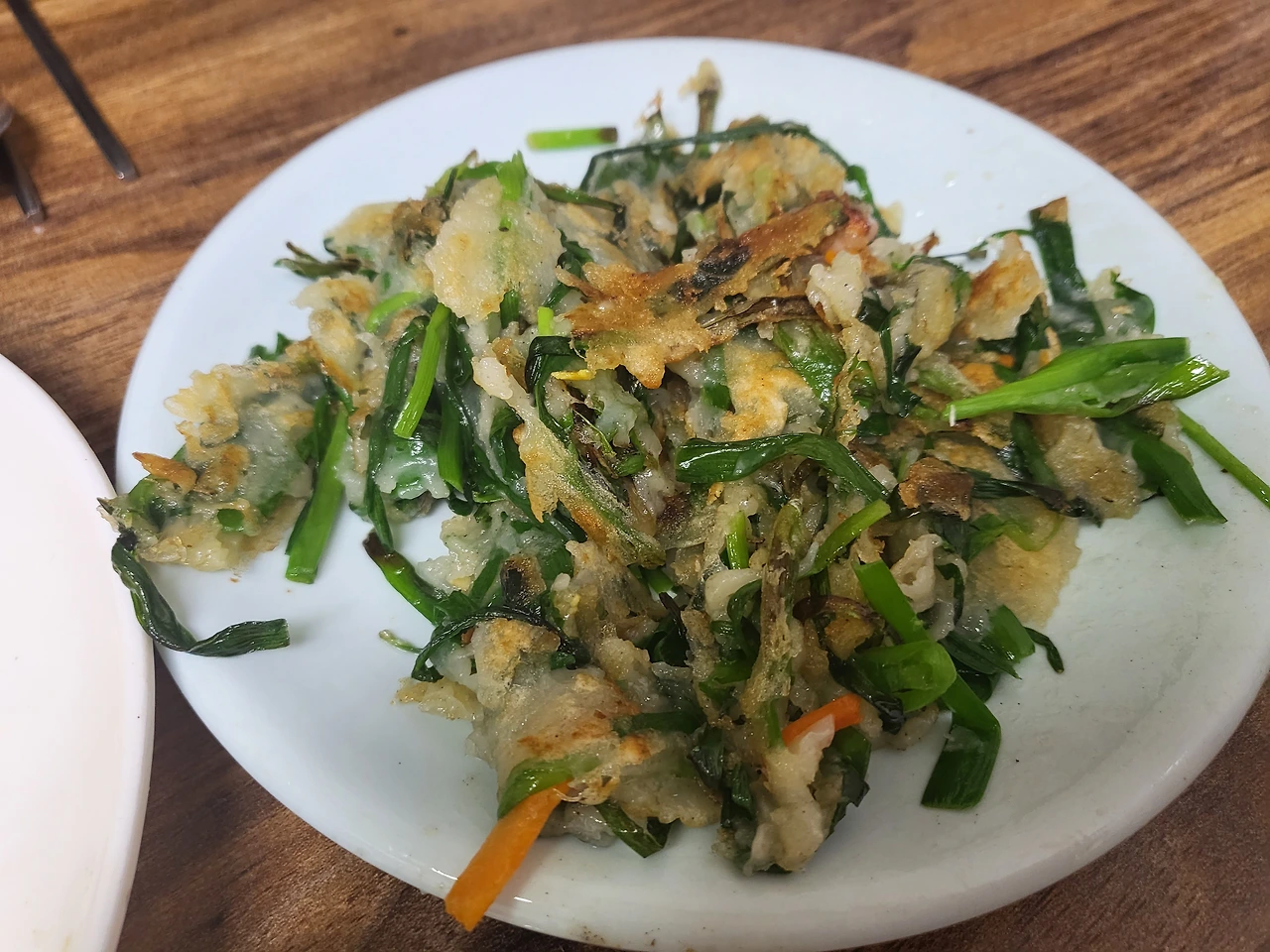 부추전은 땡초간장이랑 같이 먹으면 환장이다!!