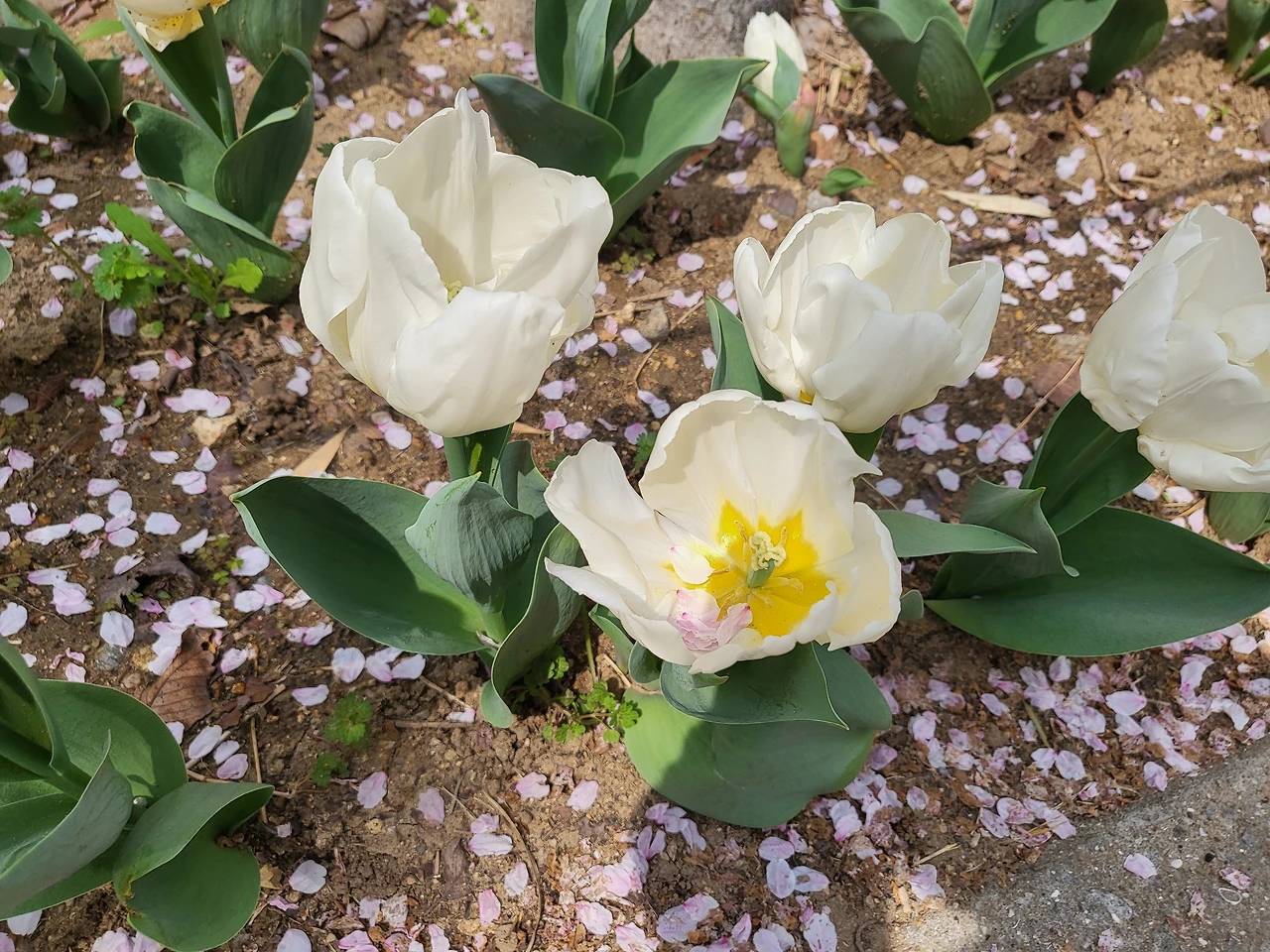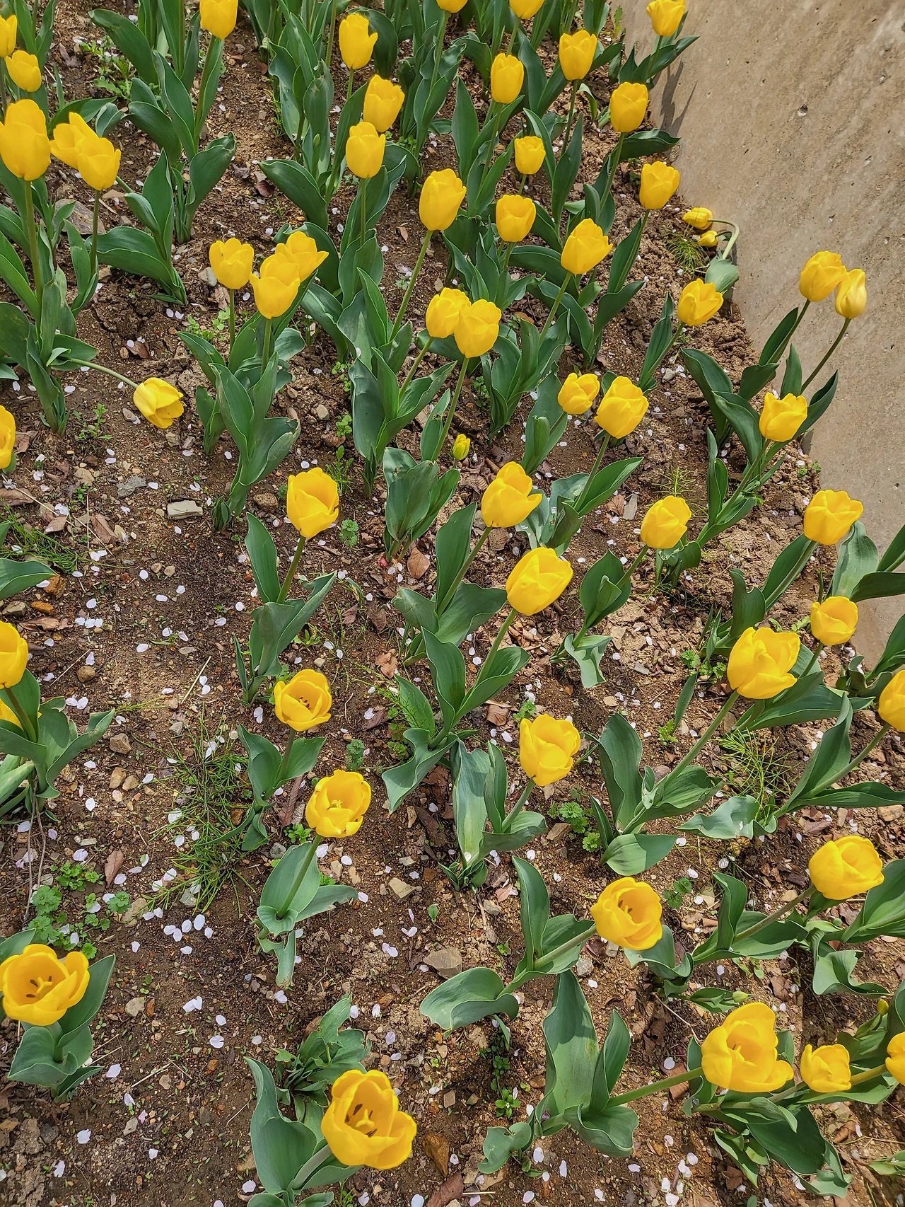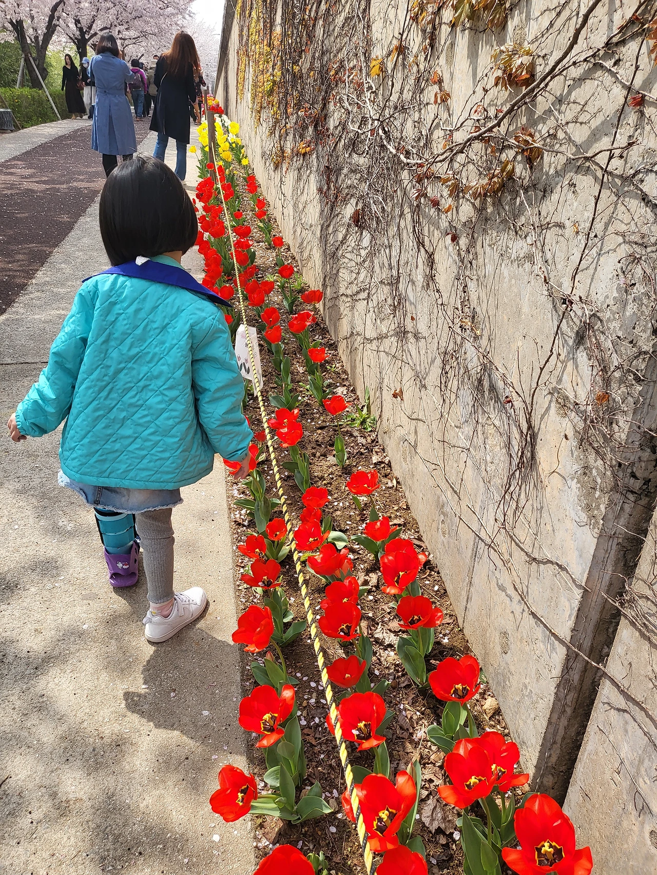 벚꽃보며 걷는 길에 눈길 사로 잡은 색색의 튤립들