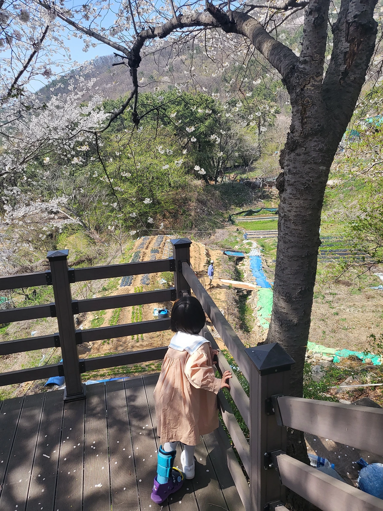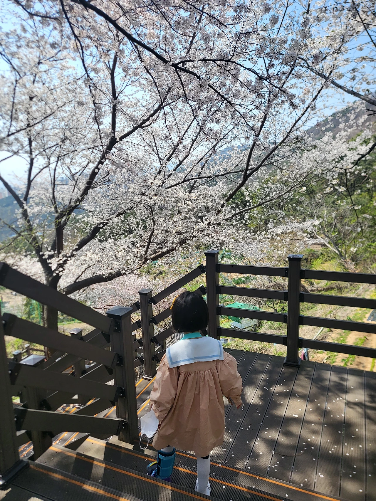 꽃길을 걸으니 신이 나는지 자연에게 인사를 건넨다. 그러다 꽃가루를 날려~하며 노래를 부른다. 그 부분만 알아서 한 구절만 무한 반복이지만 아이도 나름대로 봄을 느낀다.