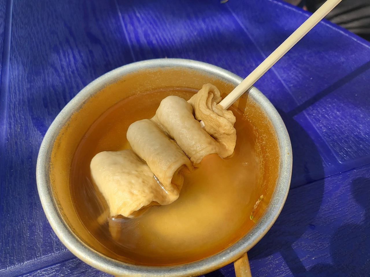 먹다 보니 꽃 잎이 날려 들어오기도 했다.