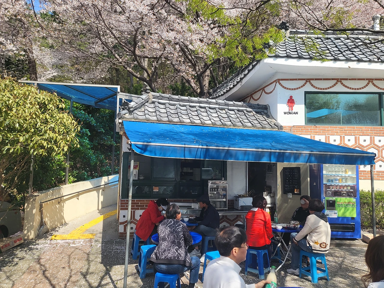 벚꽃나무 아래 앉아 국수를 먹었다.