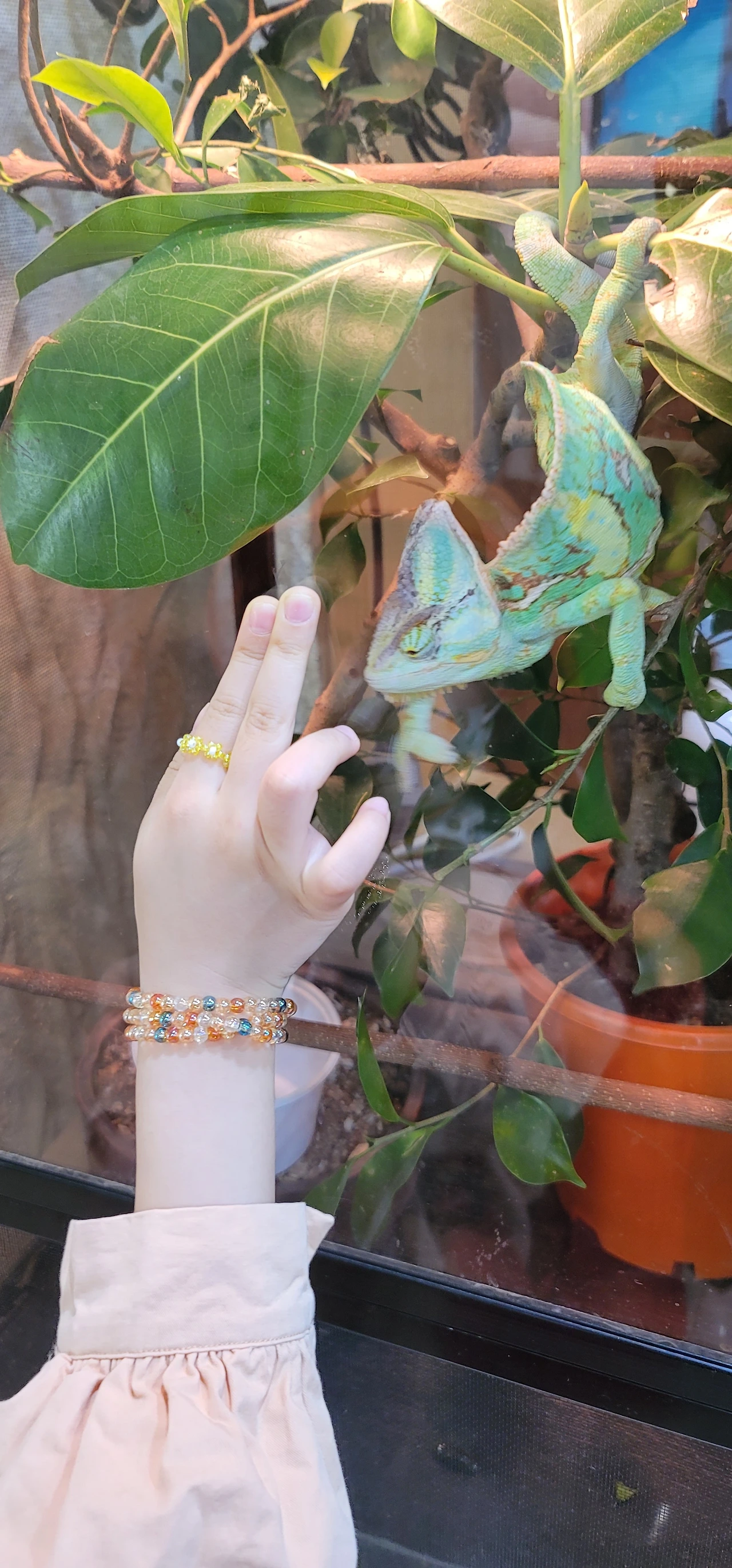 바람이 많이 불어 실내로 들어가니 카멜레온이 자리 잡고 있었다.