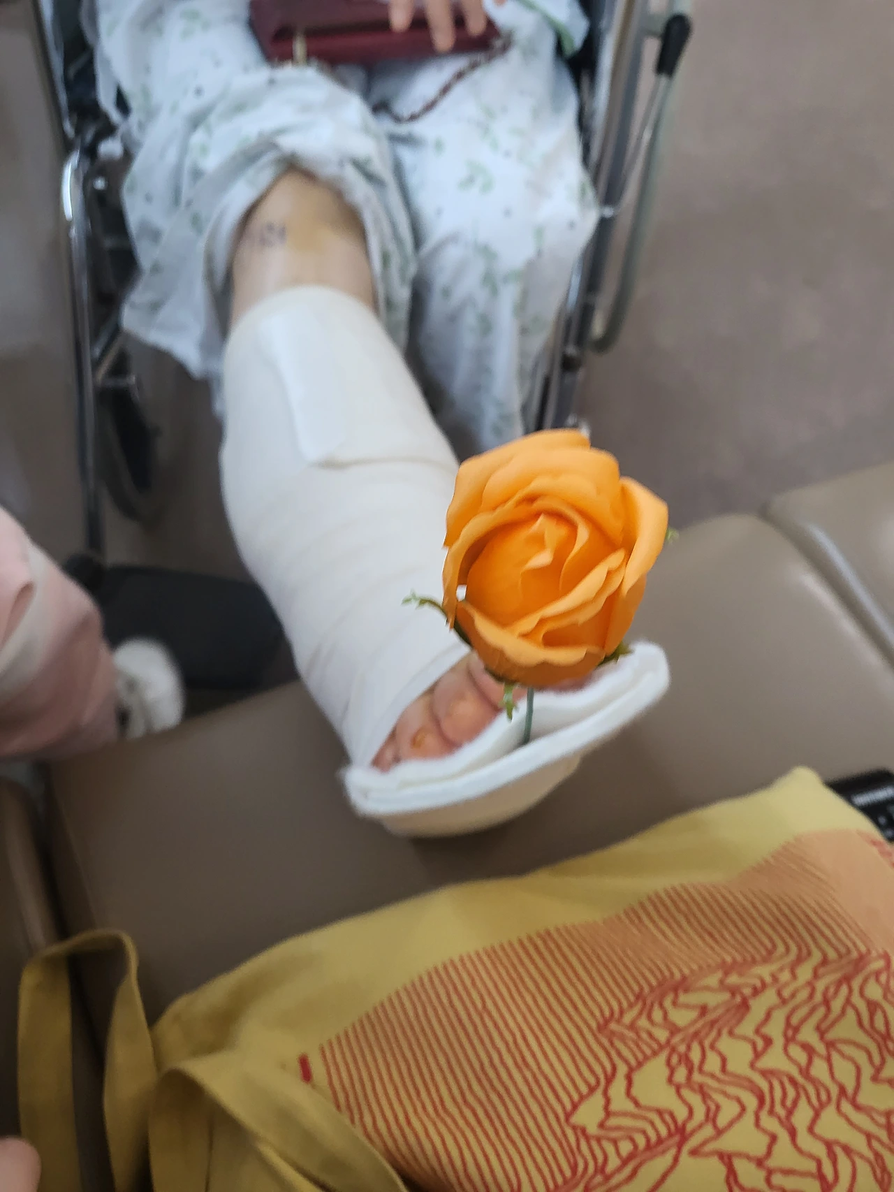 "엄마 입원 시켰다. 수술해야 된다네. 발목뼈가 세 군대 부러졌다네. 많이 다쳤네. 미끄러졌을 때 가만히 앉아있지 억지로 일어나다가 더 다친 거 같은데... 월요일에 수술 잡았다. "