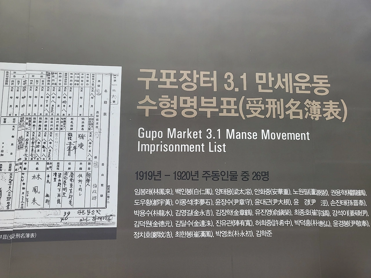 한쪽 벽에(철길을 막은 벽) 태극기를 달고 독립운동가의 사진과 업적을 남긴 것으로 끝이다.