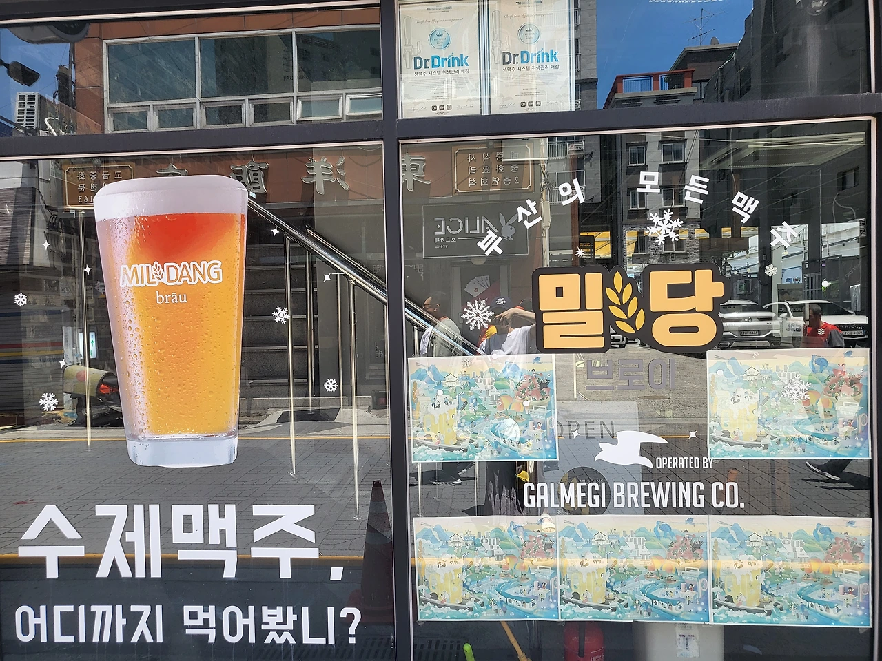 북구청에서 구포 밀을 이용한 메뉴 개발 사업을 진행하며 구포 맥주가 탄생했다. 몇 년 전 구포 맥주 시음회 할 때 아이 유모차 끌고 구포역 광장에 나와 맛보기도 했다. 탁 쏘며 새콤한 듯한 맛도 느껴지면서 고소한 맥주가 시원해 제대로 맛봐야지 했는데... 무색한 기약으로만 남아 이 가게만 지나가면 언제 여기 와서 맥주 마셔보나.. 하며 미련을 보인다.