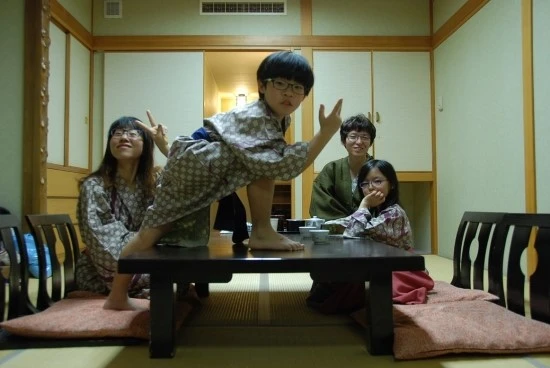 어제와는 정말 다른 분위기, 완전 아늑하고 편해 보이는 일본 전통 다다미 방은 가족 모두를 황홀하게 했다. 아이들 얼굴에 웃음꽃이 활짝 피었다...