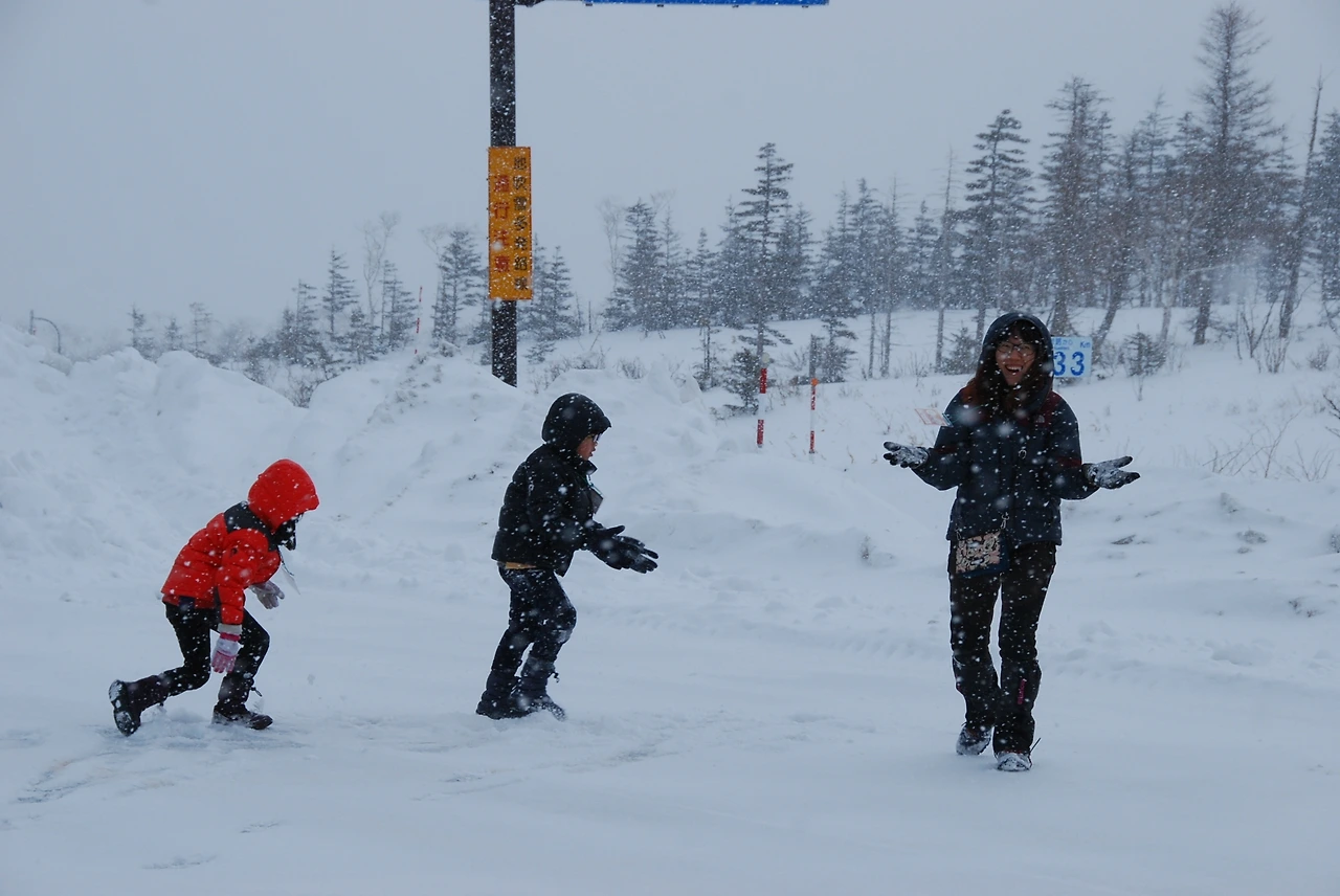 아칸 국립공원 숲은 나무와 눈밖에 없었지만 형용할 수 없을 만큼 아름다워 그림 속에 들어와 있는 착각에 빠질 정도였다. 에코버스는 눈길을 거침없이 달렸다. 눈길에서 이런 속도는 여태껏 경험해보지 못하여 살짝 무섭기까지 했는데 눈 덮인 숲 경치가 아름답기도 하고 버스기사님의 스릴감 넘치는 드라이브 실력도 신나고 재미있어서 두려움은 잠시 내려놓을 수 있었다. 나 또한 20년 운전 경력자로서 타이어가 미끄러진다는 느낌을 받았지만 신기하게 버스는 똑바로 잘 미끄러져서 정지할 곳에서는 정확하게 정지했다.