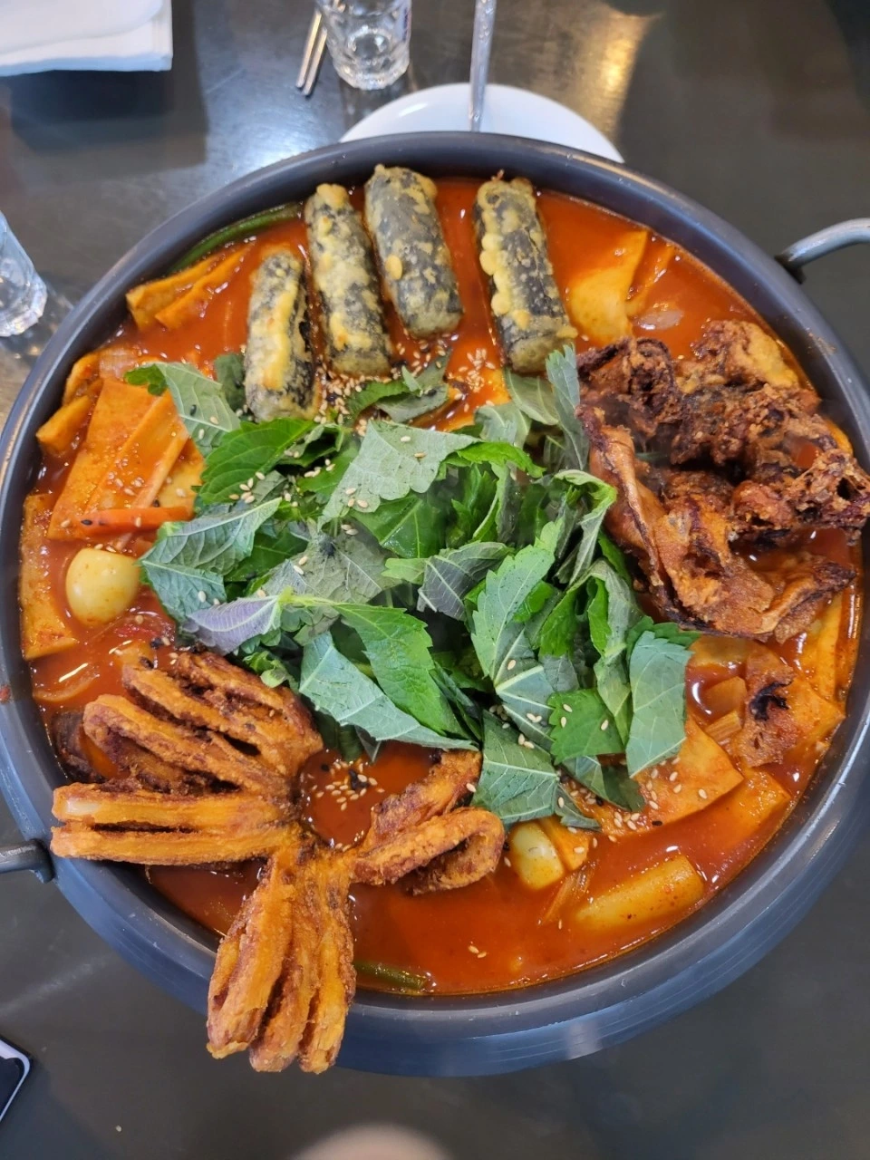 식사 : 떡뽂이가 참 맛있었다. 튀긴 오징어가 바삭하니 좋고, 매콤한 국물이 소주를 부르는 그 맛이 일품이다.