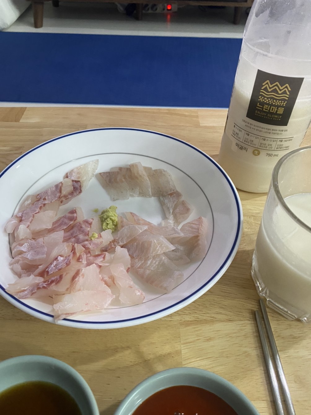 항상 맛있는 횟감에 한잔을 즐긴다.