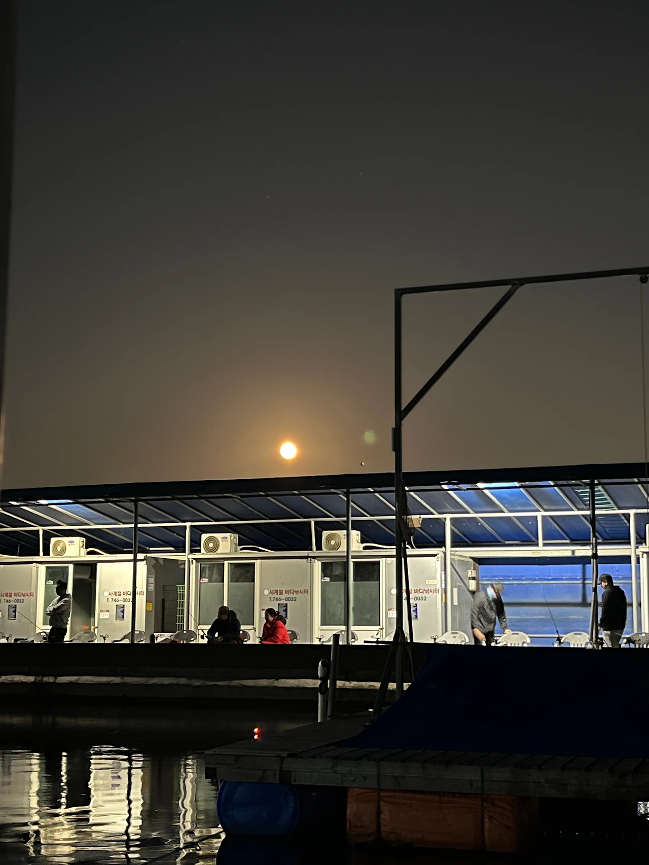 해 뜬 상태에서 들어온 유터낚시터에서 달 보고 집에 갔다.