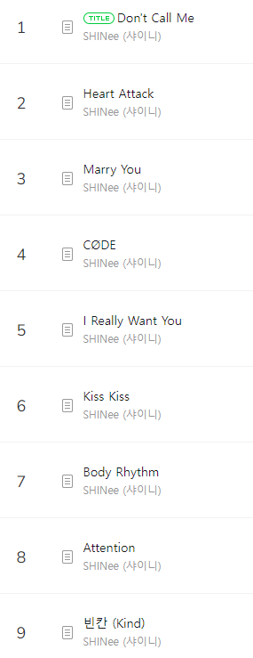 14년차 이룰거 다 이뤄본 아이돌이 무난하게 타이틀을 한다면 나의 경우 오히려 코드를 타이틀로 밀었을 것 같다. 여기서 살짝 다른방향으로 잡는다면 펑키한 트랙의 하트어택을 타이틀로 밀었을것 같다. 하지만 Don’t call me가 타이틀이라는 점에서 맴버들의 샤이니 그룹의 아이덴티티인 컨템퍼러리밴드를 살리기 위해 진짜 고민의 고민을 했구나 느낄수 있다.
