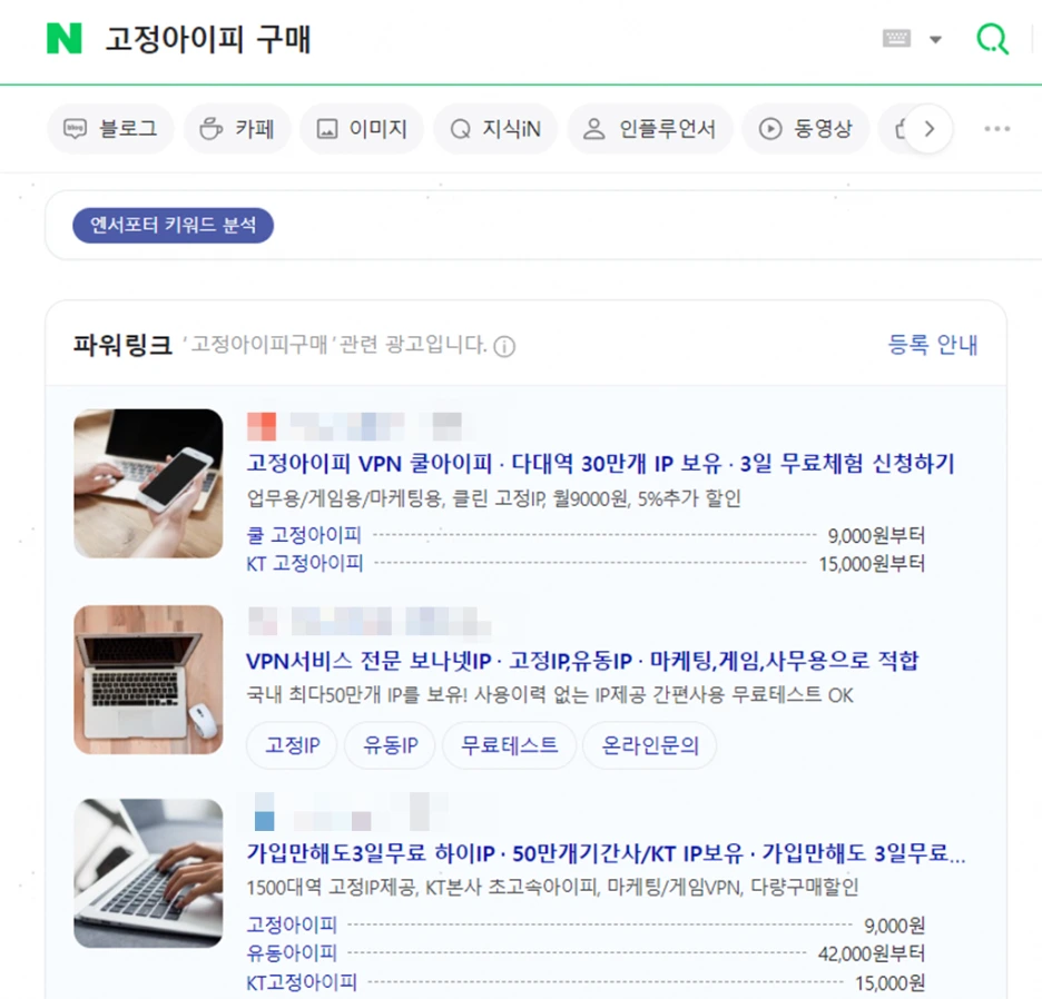 인터넷 검색창에서 고정아이피 구매라고 검색하게 되면 광고들이 즐비하다. 업무용, 게임용, 마케팅용 목적은 다양하다.