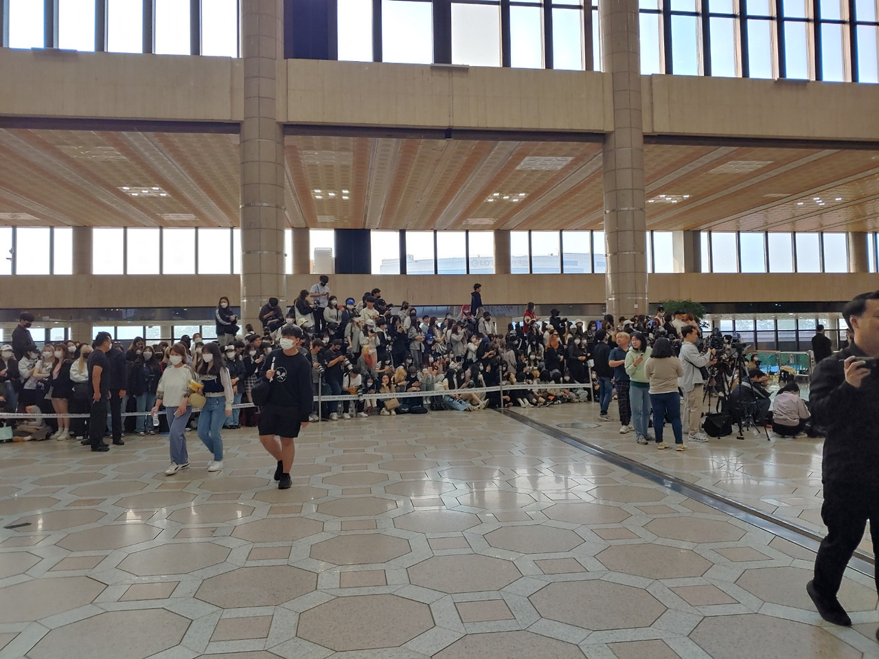 면세점 구역은 밖에 비해 비교적 사람이 적고 마음만 먹으면 조금 더 가까이서 볼 수 있을 것 같았고, 곧 나올 기세다.