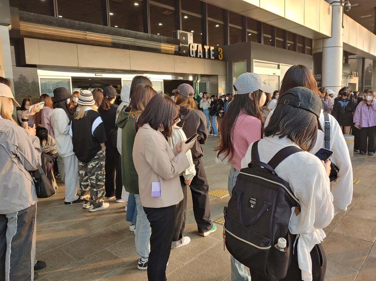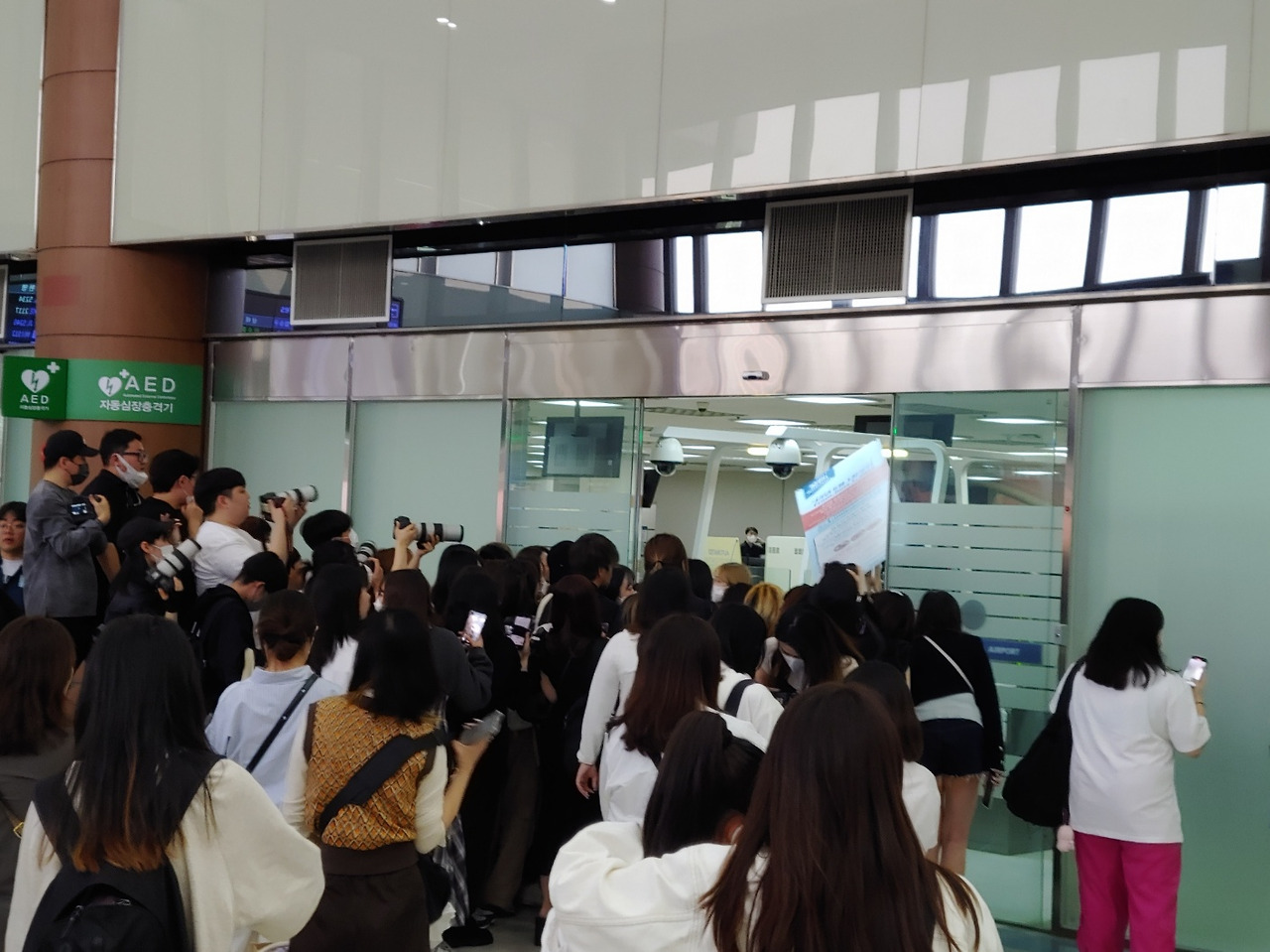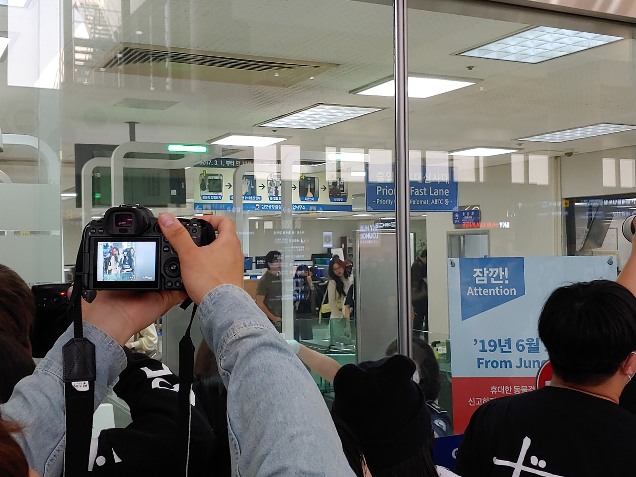 일부는 연예인을 따라가고 일부는 여권 마지막 심사를 하고 나오는 곳에서 계속 기다린다.