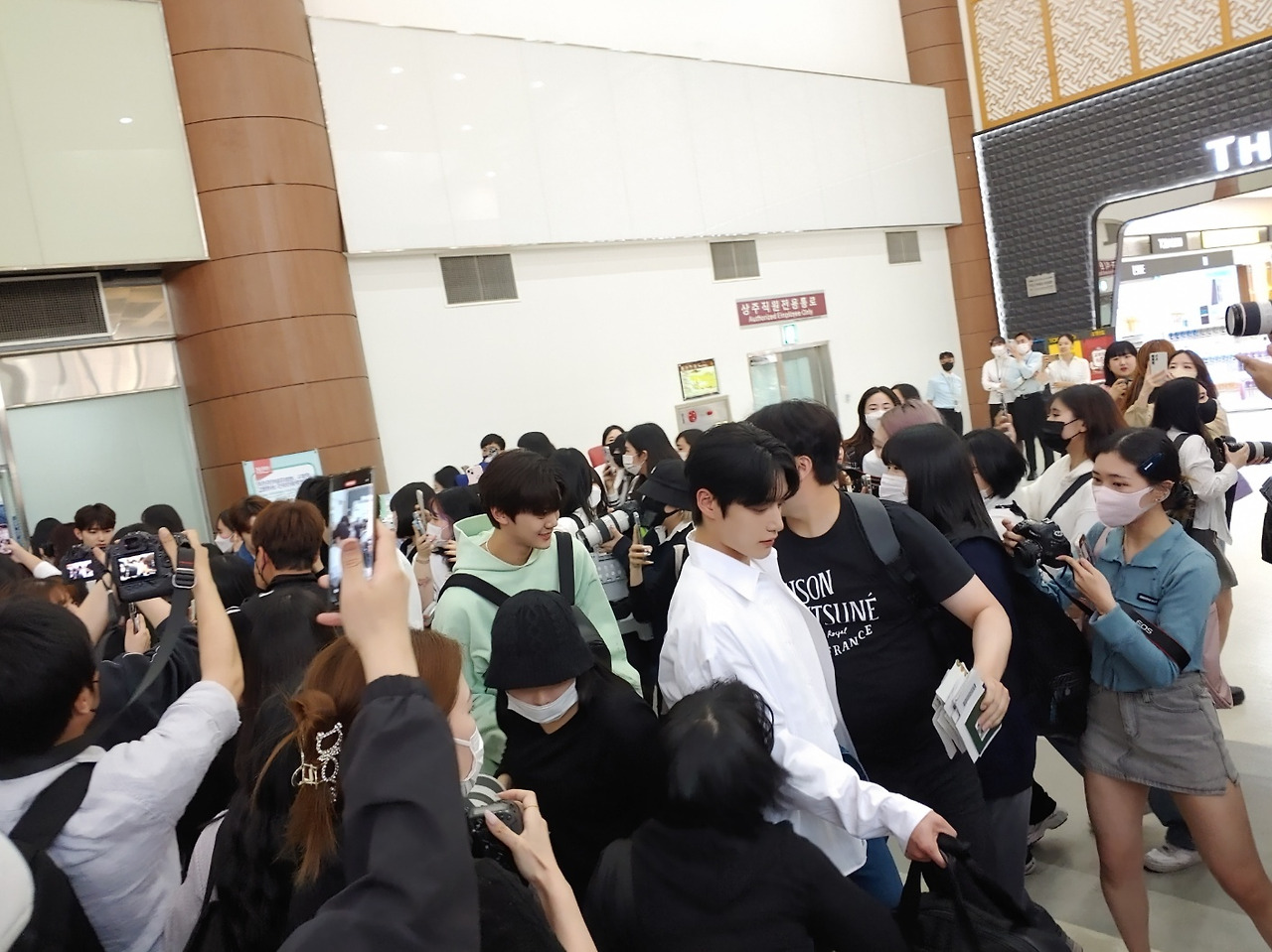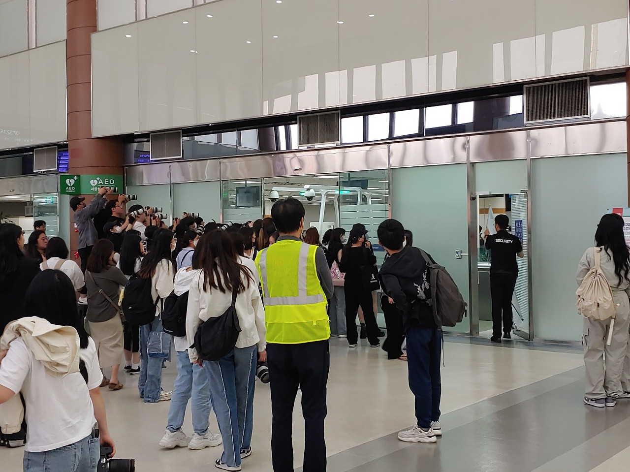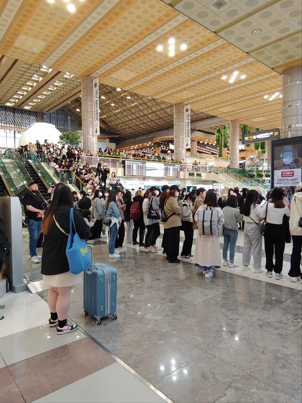 일부는 연예인을 따라가고 일부는 여권 마지막 심사를 하고 나오는 곳에서 계속 기다린다.