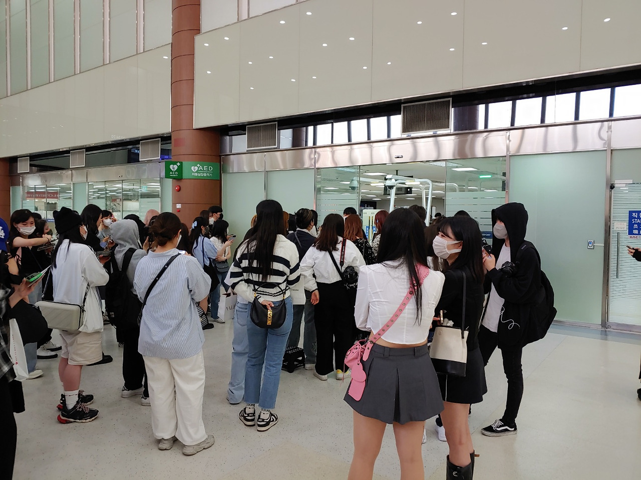 도착했는데 많은 사람들이 줄을 서있다. 아마 유명 연예인이 오나 보다.