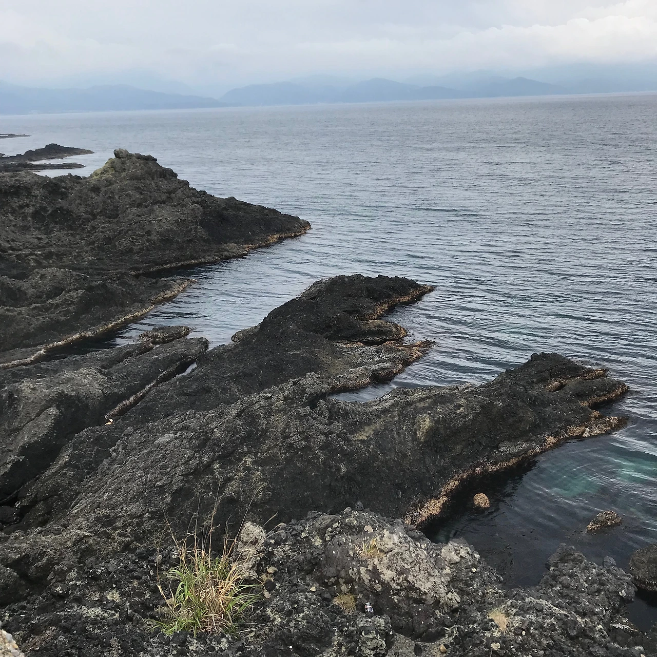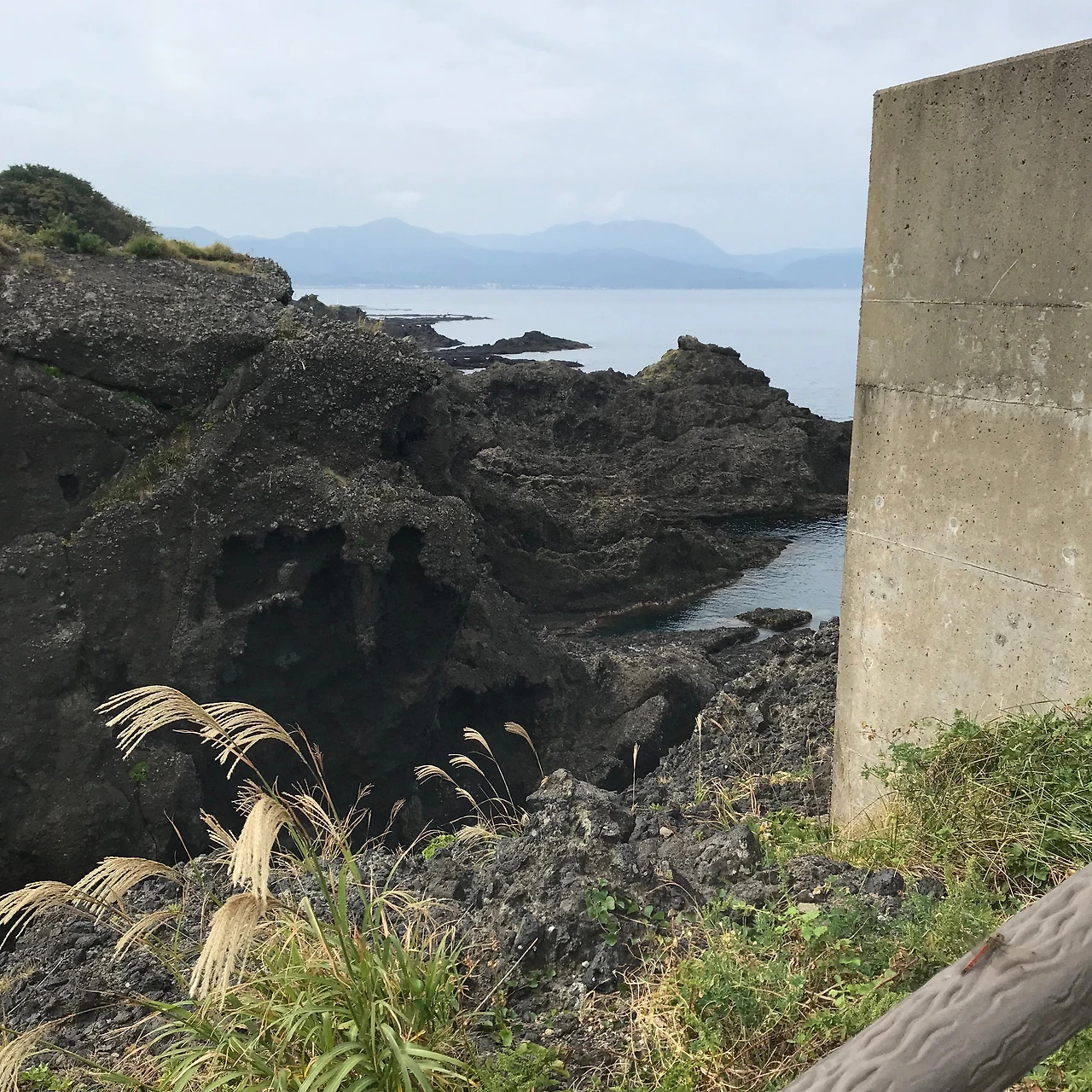 다자이의 표현이 조금 과장돼 있는지 모르겠지만 실제 닷비자키로 가는 길에는 영화에서 나올법한 경치를 볼 수 있다. 위에 사진은 이마미자키라는 곳인데, 색깔도 모양도 특이하다. 어떤 부분은 마치 검게 탄 공룡 시체가 놓여있는 것처럼 보였다.