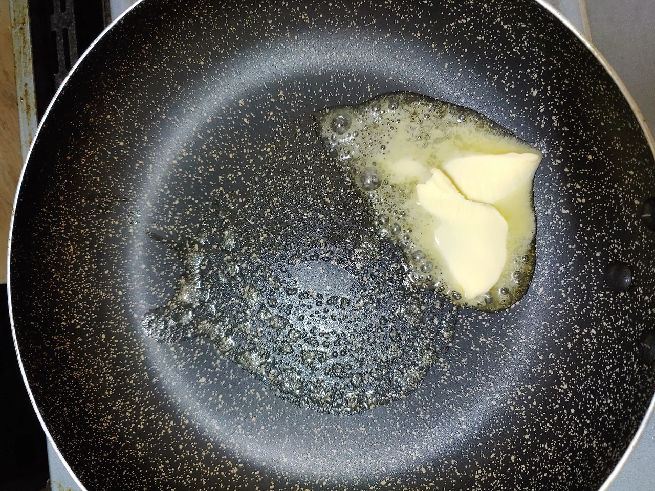 "버터로 양파를 볶아요. 약간 노릇해질 때까지요"