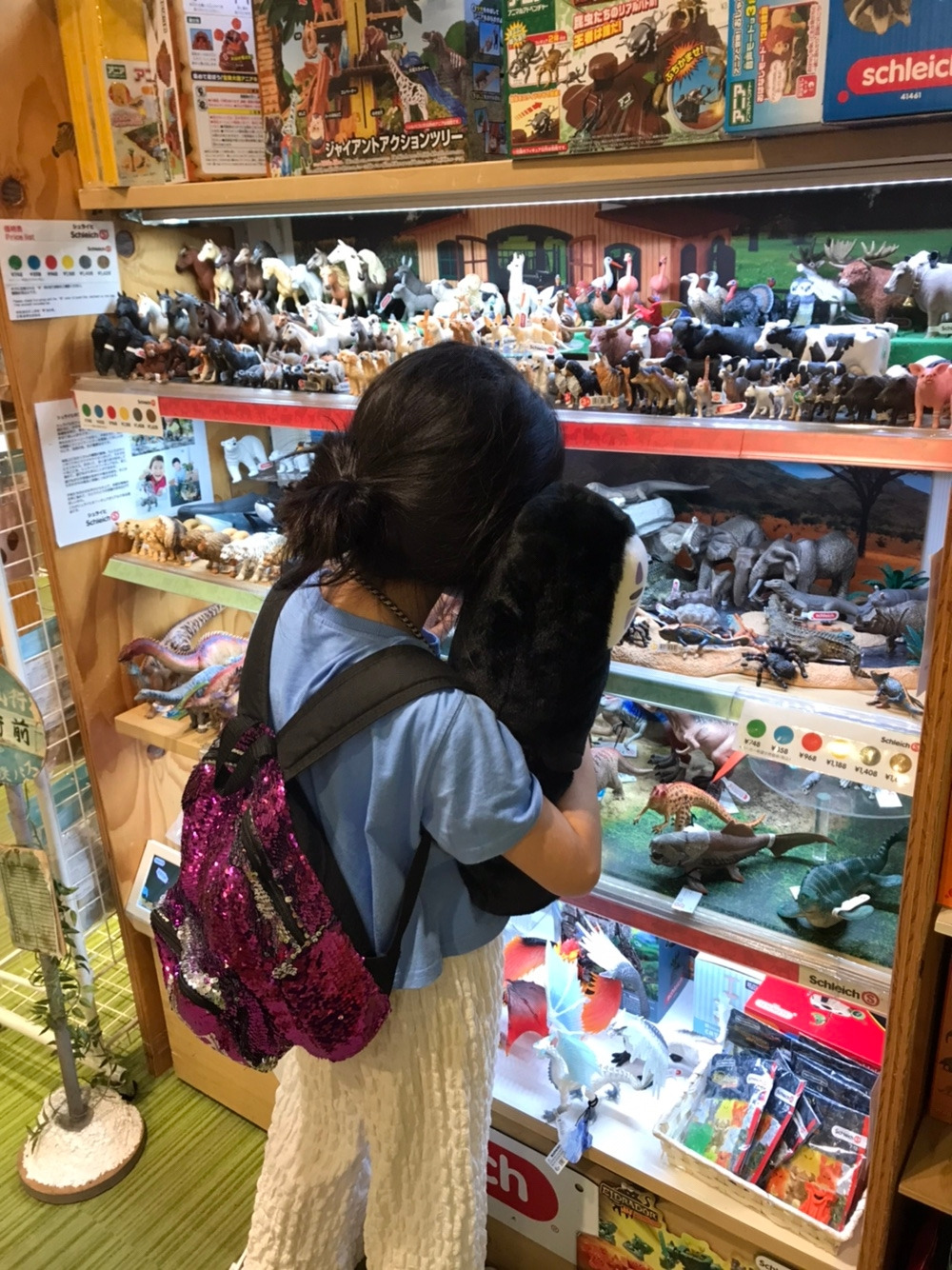 동경의 신바시에 유명한 장난감 가게가 있다고 해서 찾아갔다. 네 개 층에서 장난감을 종류별로 판매하고 있었다. 역에서 멀지 않았지만 날씨가 너무 더워 장난감 가게까지 10분 정도 이동이 벅차게 느껴질 정도였다. 더운 날씨에 힘들어하던 보람이는 장난감 가게에 들어가는 순간 눈이 반짝이기 시작했다. 특히 3층 지브리 아이템을 모아둔 곳에서는 방금까지 더위에 힘들어하던 그 보람이가 아니었다.