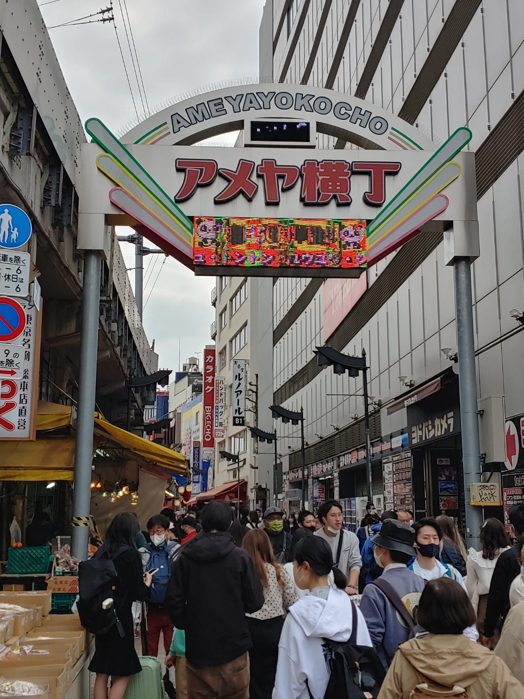 그런데 그날 날씨가 너무너무 더워 아메요코 시장을 잠깐 둘러보는데 등에 땀이 뻘뻘 났다. 딱히 들어갈 곳도 없고 짐도 많고 해서 그냥 둘러보기만 했다. 트렁크를 맡길 곳을 찾아봤지만 거의 다 차 있어, 끌고 다녀야 했는데 그래서 더 더웠다. 우에노 공원은 엄두도내지 못하고 포기했었다.