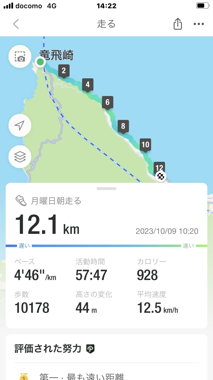 어떻게든 완주했다. 기록도 나쁘지 않았다. 번호표에 칩을 달고 달렸는데, 완주 후 뜯어서 바로 칩 반납 부스에 반납했다. 그랬더니 즉석에서 달리기 완주 증명서에 이름, 코스, 완주 기록, 당일 날씨 등이 적힌 증명서를 발급해 줬다. 기록은 57분 10초! 이건 내 예상을 훌쩍 뛰어넘은 기록이었다. 12km 코스이므로 약 1시간 10분에 통과하면 된다고 생각했다. 빠르면 1시간 5분 정도 생각했는데 57분에 통과했다니 믿기지 않았다. 스마트폰으로도 기록을 측정했는데 대략 1km 4분 59초에서 4분 30초 페이스로 달린 것으로 나타났다. 지금까지 꽤 연습을 했고 몇 번 기록을 재 봤었는데 1km를 5분 이내로 달려본 적이 없었다. 역시 많은 사람이랑 함께 달려 페이스가 좋게 나왔나 보다.