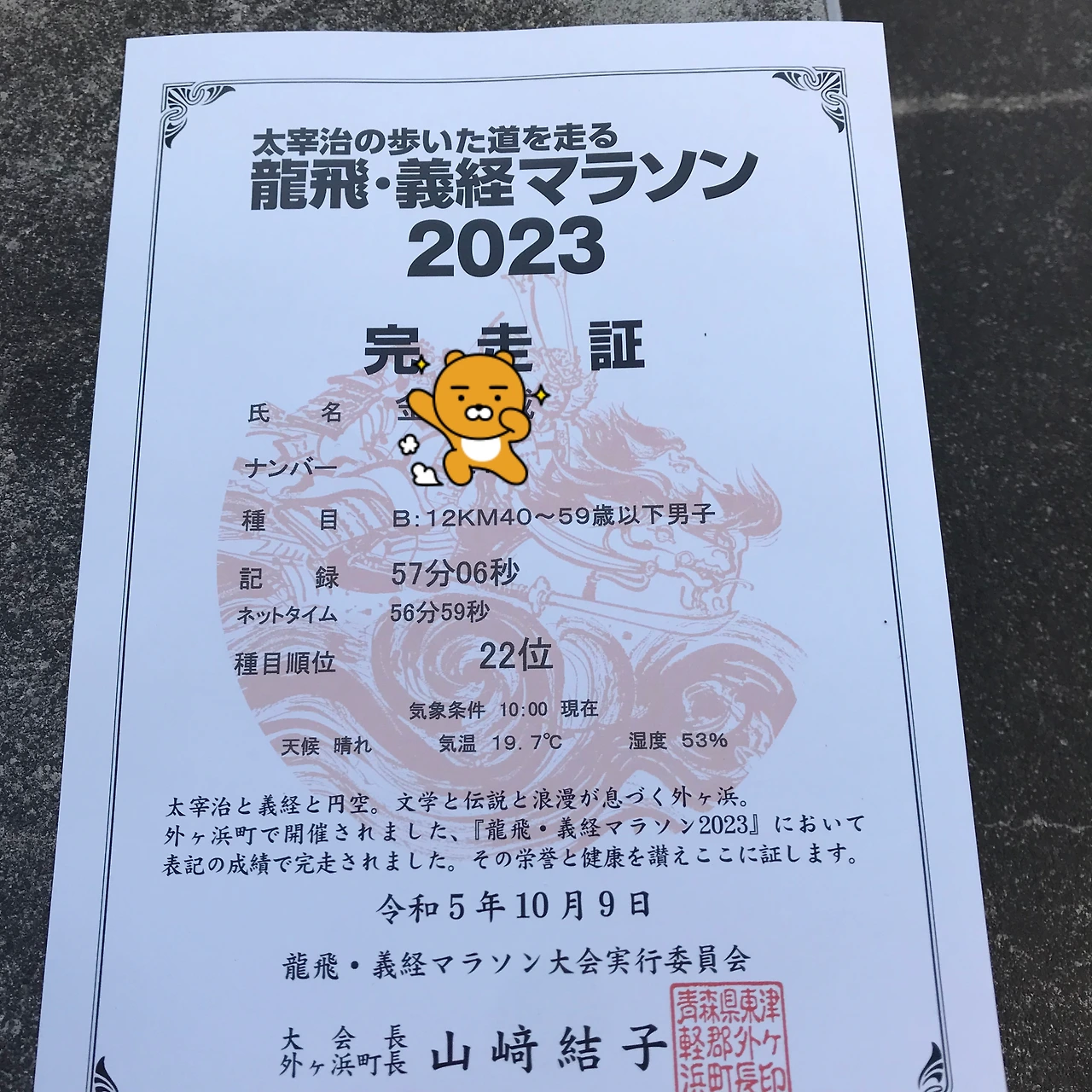 9월 2일 아오모리로 돌아와서 약 한 달 동안 마라톤 대회를 준비했다. 10월 9일 아침, 마라톤 대회 개회식이 있는 민마야체육관으로 향했다. 숙소에서 약 1시간 30분 거리. 같은 숙소에 거주하고 있는 S선생님이 응원차 함께 나섰다. 도착해서 함께 달리기로 한 S 씨를 만나 접수를 마치고 일정을 안내받았다. 실내 체육관에서 개회식이 열렸는데, 지역의원, 소토가하마정장(우리니라 읍장 정도), 지역 관계자들, 초대 마라토너 겸 가수 등이 인사도 하고, 축하곡도 불렀다. 코로나로 인해 4년 만에 개최되며, 원래 8월 달에 개최했는데 이번에는 10월에 개최하게 됐다고 한다. 이번엔 아오모리도 이상기온으로 그 더워가 예년과 달랐는데, 10월에 개최하길 잘했다는 설명이 있었다.