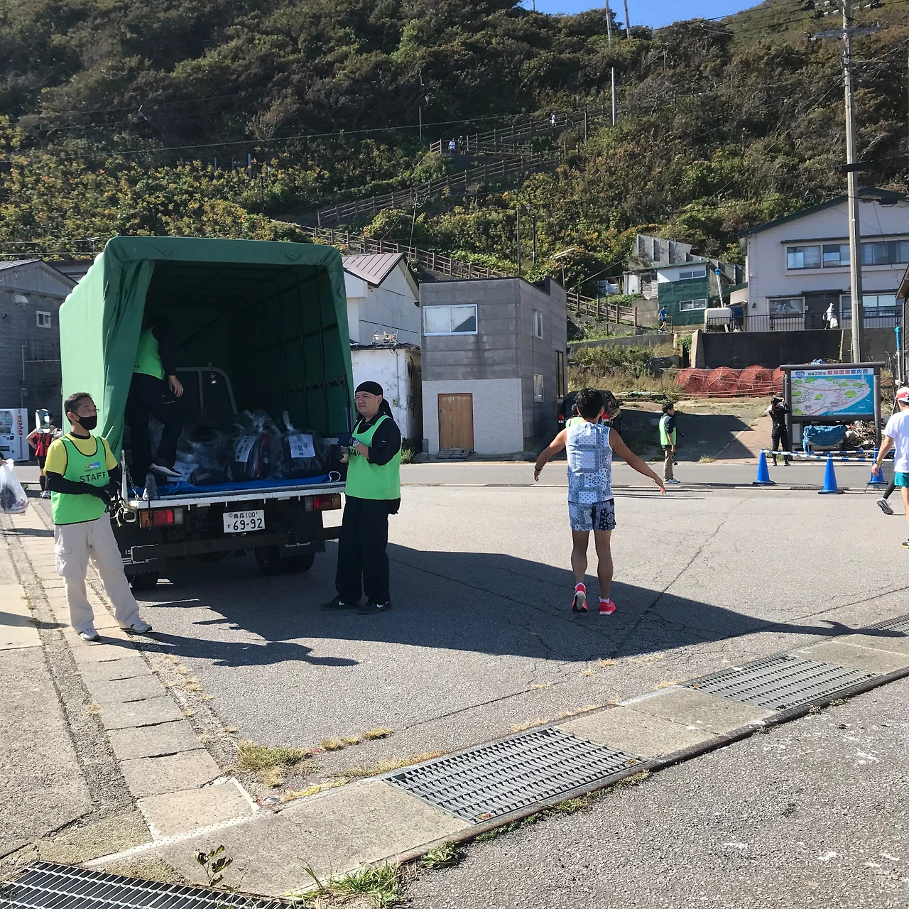 잠깐 둘러보고 마라톤 스타트 지점으로 내려갔다. 스타트 지점에는 짐을 맡길 수 있는 트럭이 대기하고 있었다. 내가 달리게 되는 다자이 코스는 반환점이 없이 닷삐에서 출발하여 골인 지점인 민마야 체육관 앞에서 마무리하게 된다. 그래서 출발 지점에서 짐을 맡기면 골인 후 찾을 수 있는 시스템이었다. 짐을 맡기고 몸을 풀고 대기했다. S 씨와 함께 얘기를 나누며 몸을 풀었다. 참가자들이 하나둘 모여들었다. 많은 런너들에게서 아우라가 느껴졌다. 우선 몸에 불필요한 살이 없이 아주 날씬했다! 언제든, 얼마든 달릴 수 있는 몸매를 갖고 있었다. 그리고 복장이라든지 장비들에서 폼이 느껴졌다. 러닝화, 모자, 선글라스까지. 역시 고수는 다르다는 느낌이 들었다.