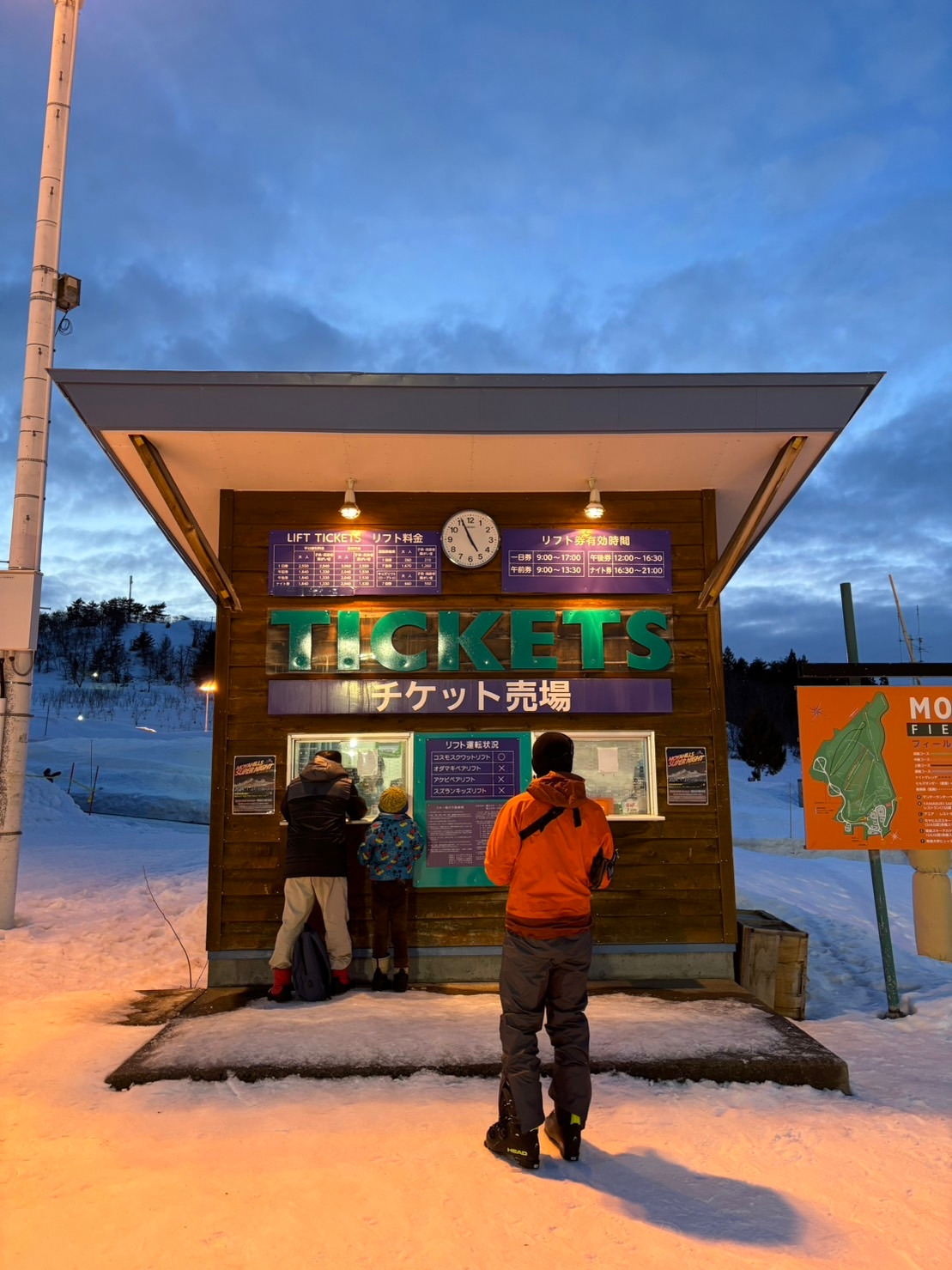 주차를 하고 스키장을 탐색했다. 지난번엔 스키장 바로 앞 펜션에 머물며 다른 사람들이 시키는 대로 하면 됐다. 이번엔 혼자 와도 능수능란하게 스키를 탈 수 있도록 주차하는 곳, 스키 갈아 신는 타이밍, 스키장으로 들어가는 방법 등을 알아봤다. 다들 스키는 어디서 갈아 신는지, 스키장으로 어떻게 들어가는지, 리프트권은 어디서 사는지 등을 확인했다. 주차장의 경우 여럿 있어 나는 제6주차장에 주차를 했는데, 제3주차장이 스키장 입구와 제일 가까웠다. 그래서 차를 제3주차장으로 이동했다. 그리고 스키부츠를 갈아 신고 스키를 들고 스키장으로 이동했다. 20미터 정도 이동하면 바로 스키장 입구의 리프트권을 판매하는 곳이 있어 나이트권을 구입했다. 나이트권은 토요일이라 2040엔.