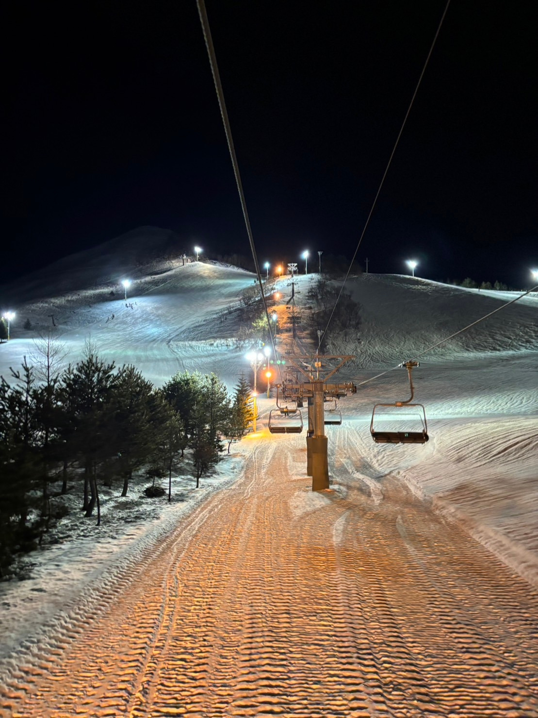 하루 일과를 끝내고 밤에 이렇게 나이트 스키를 탈 수 있는 건 부담이 없다. 아무리 바빠도 마음만 먹으면 스키를 탈 수 있는 환경이다. 나이트 코스는 4시 30분부터 9시까지인데, 4시 30분에 맞춰 오면 최선이지만 바쁘면 6시나 7시까지 와서 2~3시간만 스키를 즐겨도 충분할 것 같다. 그렇게 생각하면 나이트 스키는 주중이나 주말이나 언제나 가능하다.