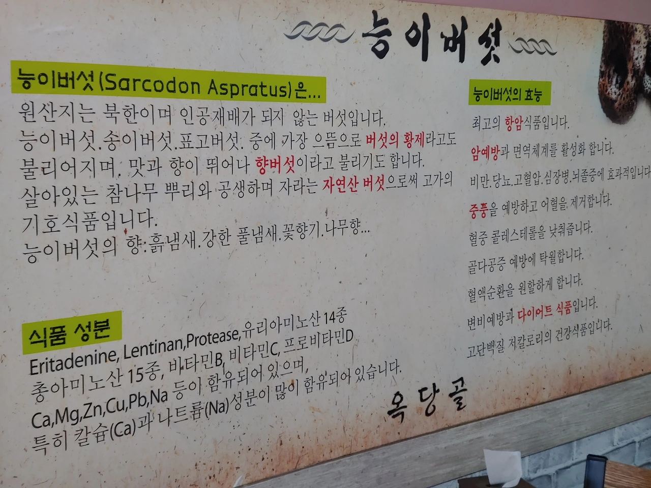 화장실에서 나와 자리에 앉았다. 그랬더니 능이버섯에 대한 안내판이 눈에 들어왔다.