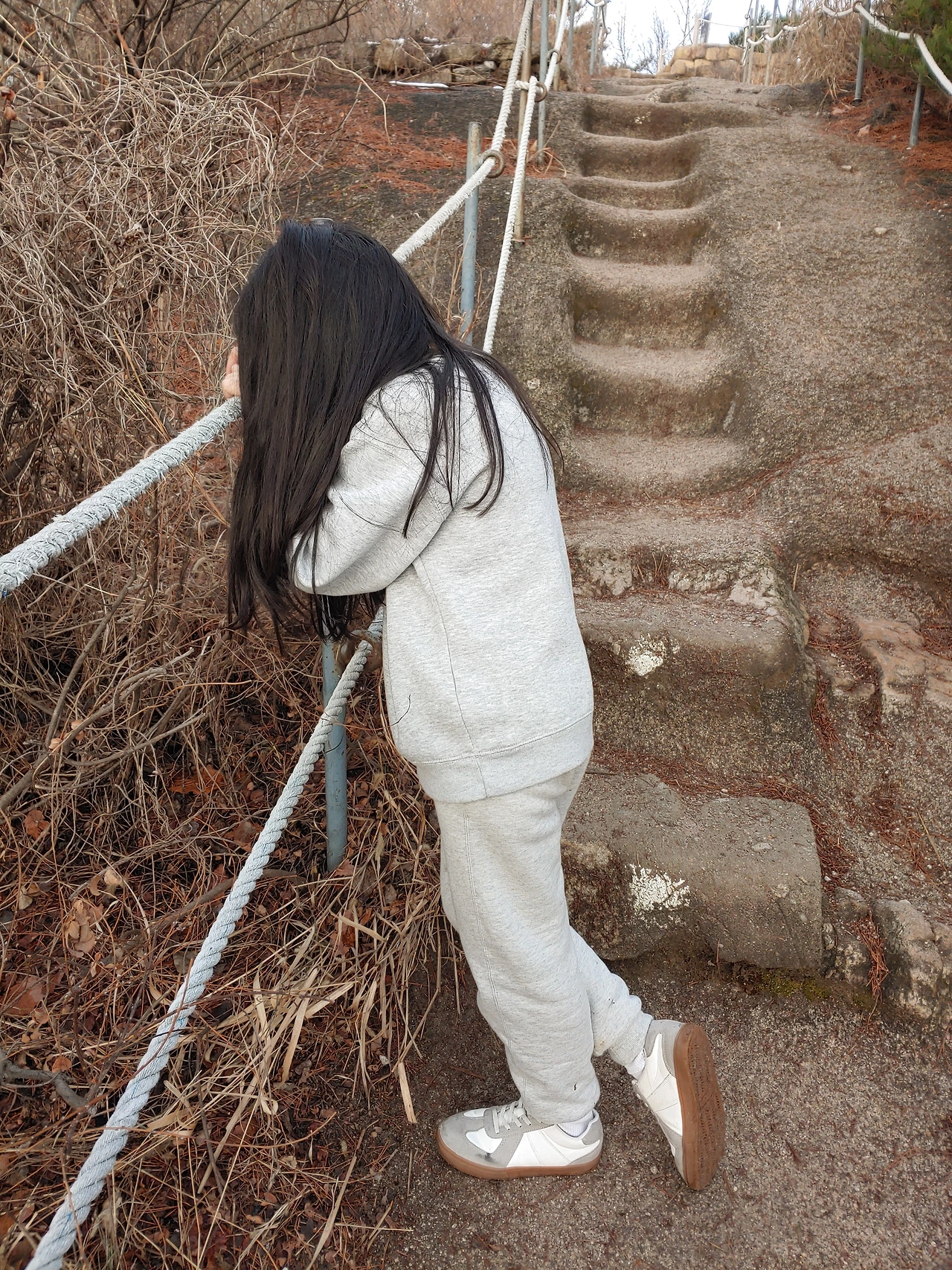 아빠가 가자고 해서 따라나섰는데 별로 오르고 싶은 생각이 안 드나 보다.