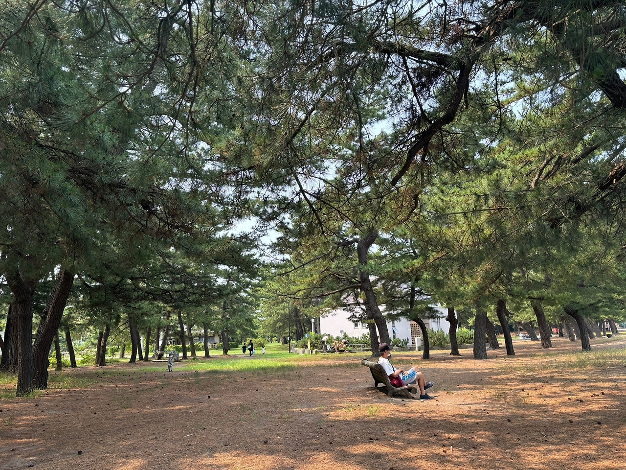 그리고 작은 텐트 속의 모녀, 조용히 아들을 지켜보는 아빠, 모래사장에서 노는 아이, 아이를 씻기는 부모, 사색하는 노인, 400년간 공원을 지켜온 소나무, 해설을 듣는 이들, 독서하는 노인 등 펼쳐진 경치를 한 장씩 담아보았다.