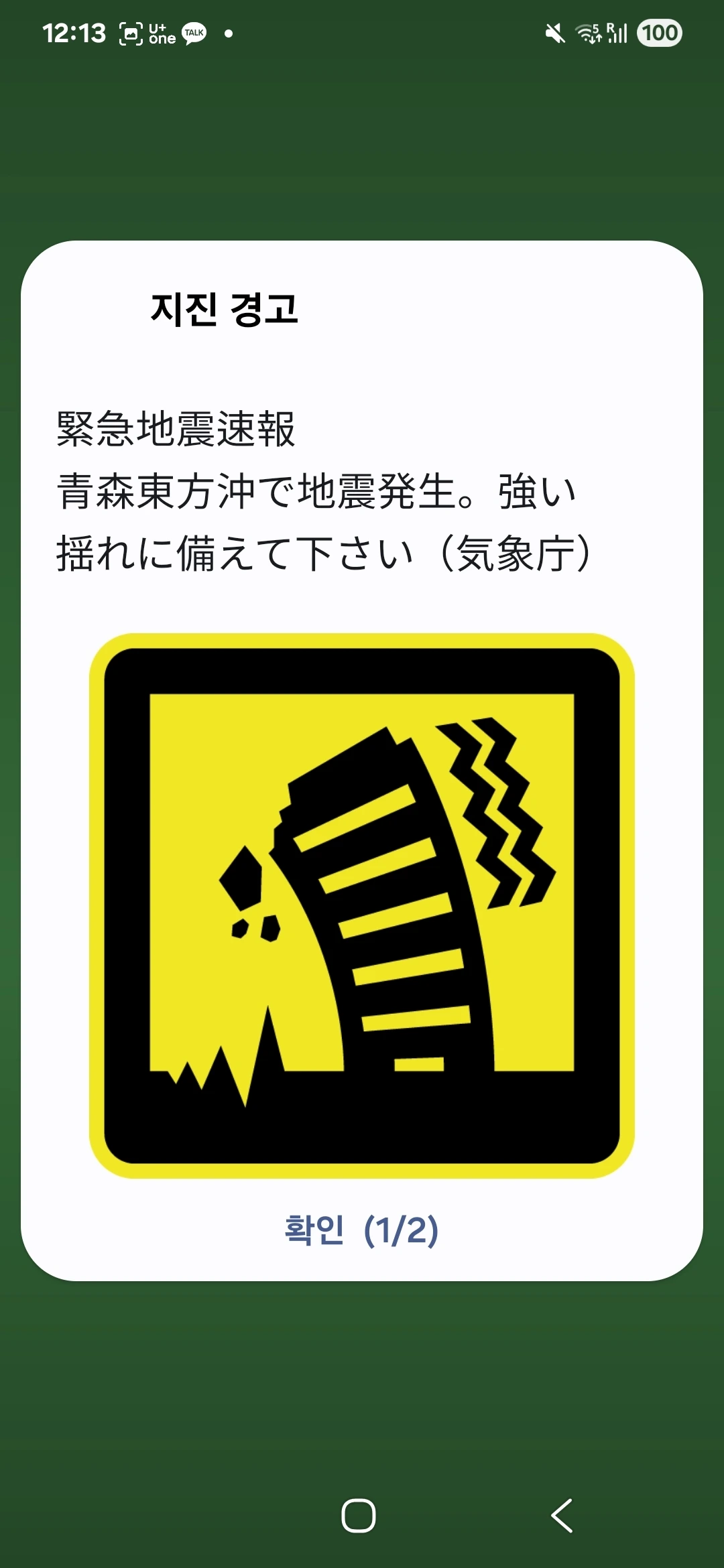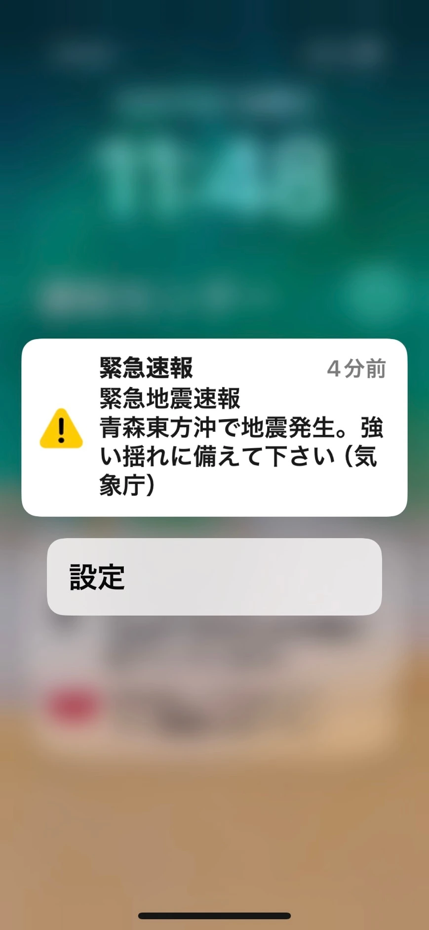 휴대폰에 경고가 올 정도면 꽤 큰 지진일 가능성이 높다. 그리고 아오모리는 며칠 전에 지진 이후 후발지진주의보가 내려져있다.
