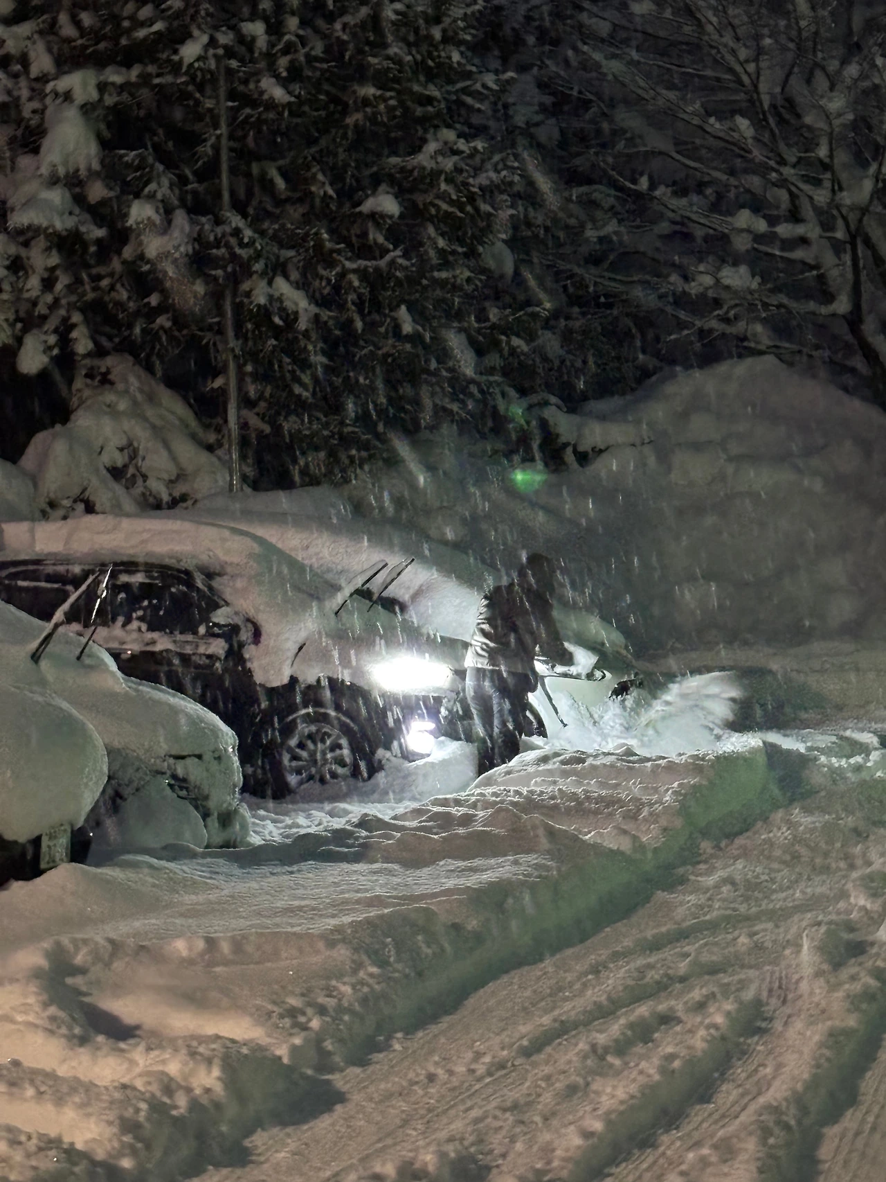 그래도, 이렇게 눈이 내려도 시내가 마비되지 않는 건 놀랍다. 틈틈이 제설 차량들이 열심히 눈을 치워준다. 그리고 여기 차량들은 모두 스노타이어를 해야 한다. 스노타이어에다 대부분 사륜구동이다. 웬만한 눈길은 막힘없이 헤쳐나갈 수 있게 준비를 하는 것이다. 그래도 가끔 눈구덩이에 빠져 고생하는 차들이 있다.