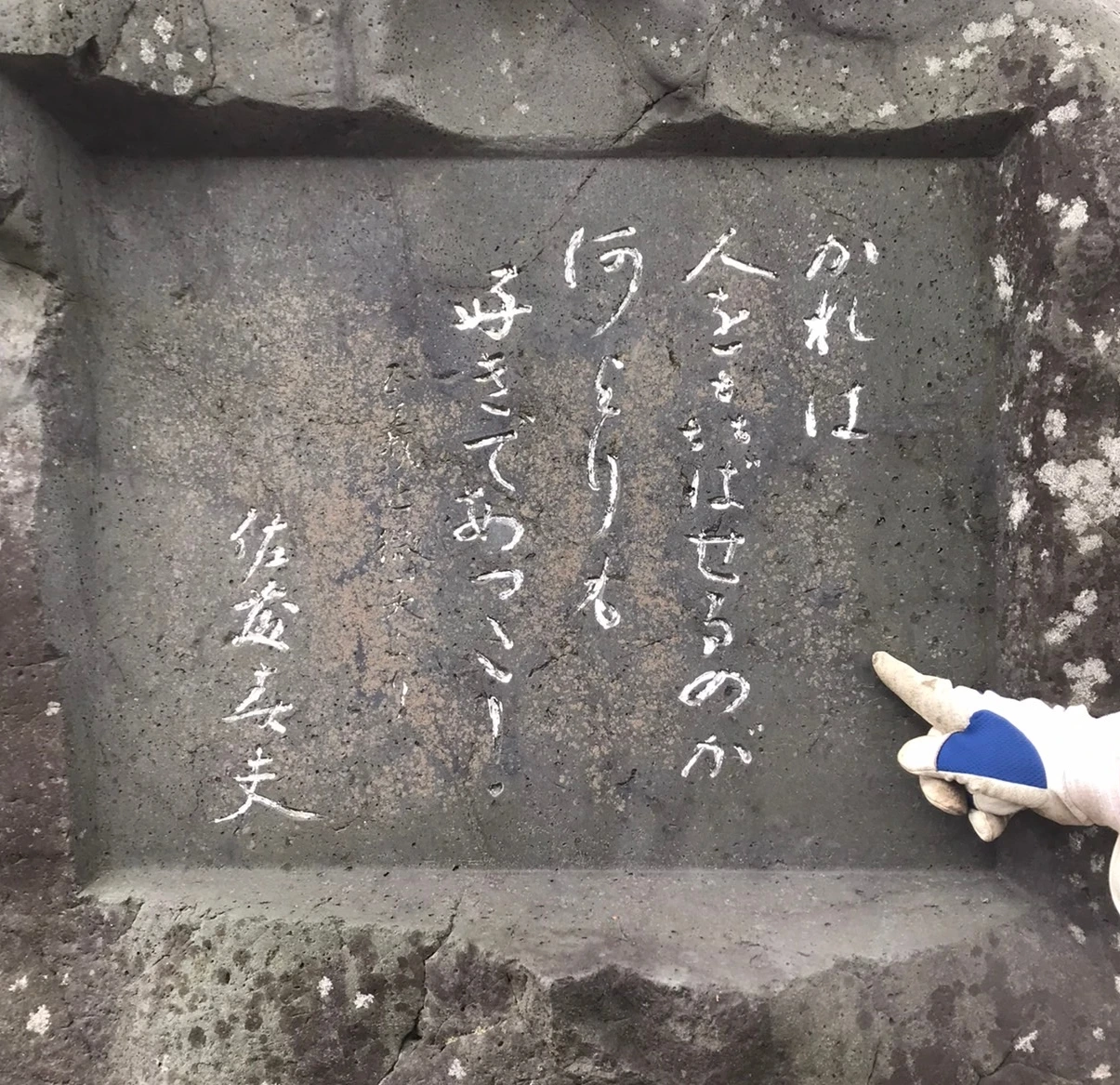 가니타의 다자이 오사무 추모비. "그는 사람 웃기기를 누구보다 좋아했다"