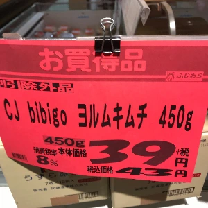 그러다 12월 말에 그 마트에서 총각김치, 열무김치, 깍두기를 판매하고 있었다. '일본에서 열무김치를 팔다니..' 가격도 훨씬 저렴했다. 이번엔 약 1900원이었다. 지난번의 반값도 안 됐고 한국에서보다 훨씬 싸게 느껴졌다. 총각김치는 지난번에 먹어보니 맛있었고 나머지 김치도 CJ에서 만든 김치니 신뢰해도 되지 싶었다. 김치를 많이 안 먹지만 욕심이 났다. 그래도 많이 살 수 없어 열무김치 하나, 총각김치 하나씩만 샀다. 며칠 뒤에 가보니 저 저렴했다. 139엔, 약 1400원. '이런 더 싸졌네.' 그래서 총각김치만 하나 더 구입했다.